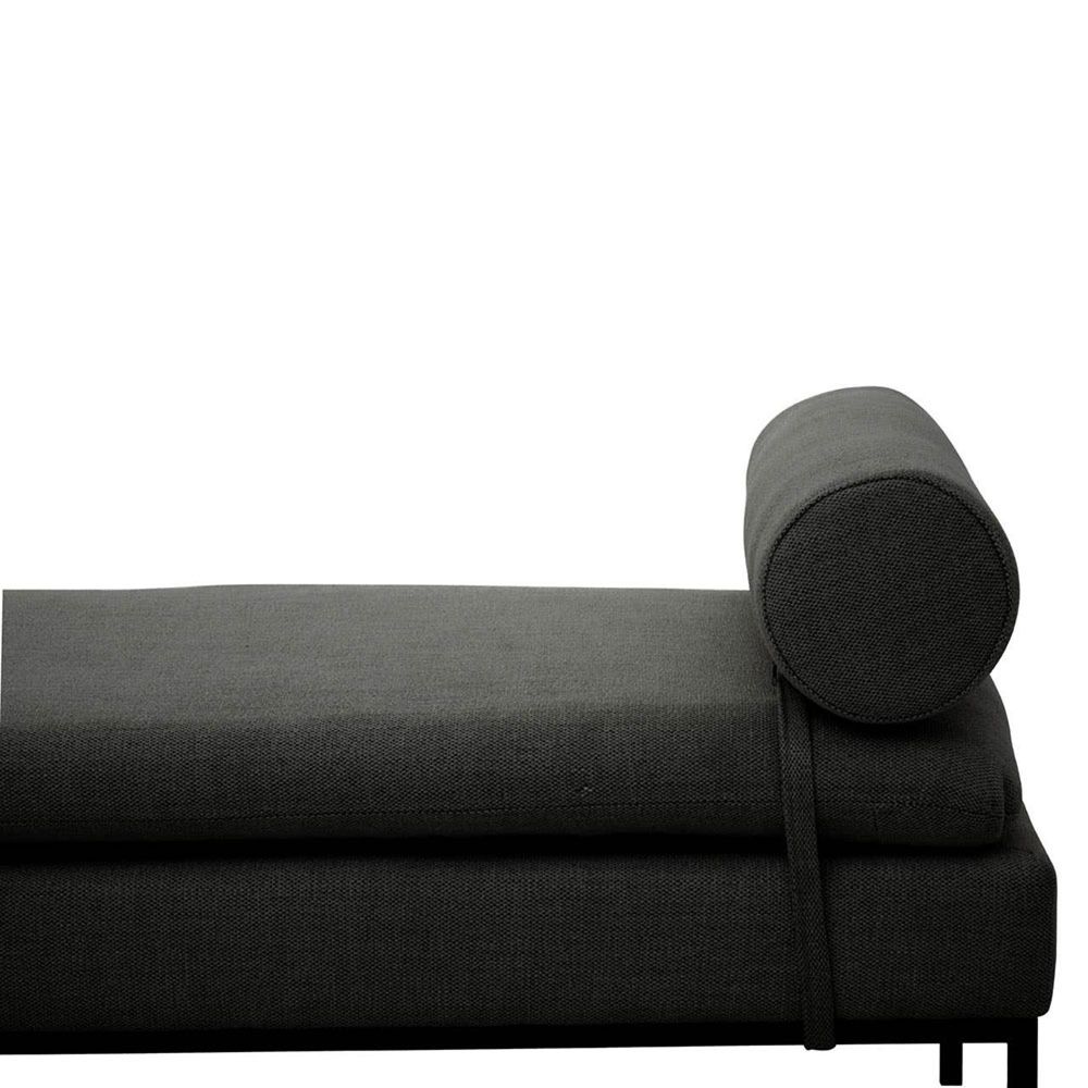 Item Code: 5528185 The Harley day bed offers comfort in a sleek design with dark grey colour and black metal legs.This day bed has a contemporary aesthetic with a minimalist profile owing to its edgeless platform and slender legs. The fabric blends style and comfort with its dark grey colour and soft thick padding.