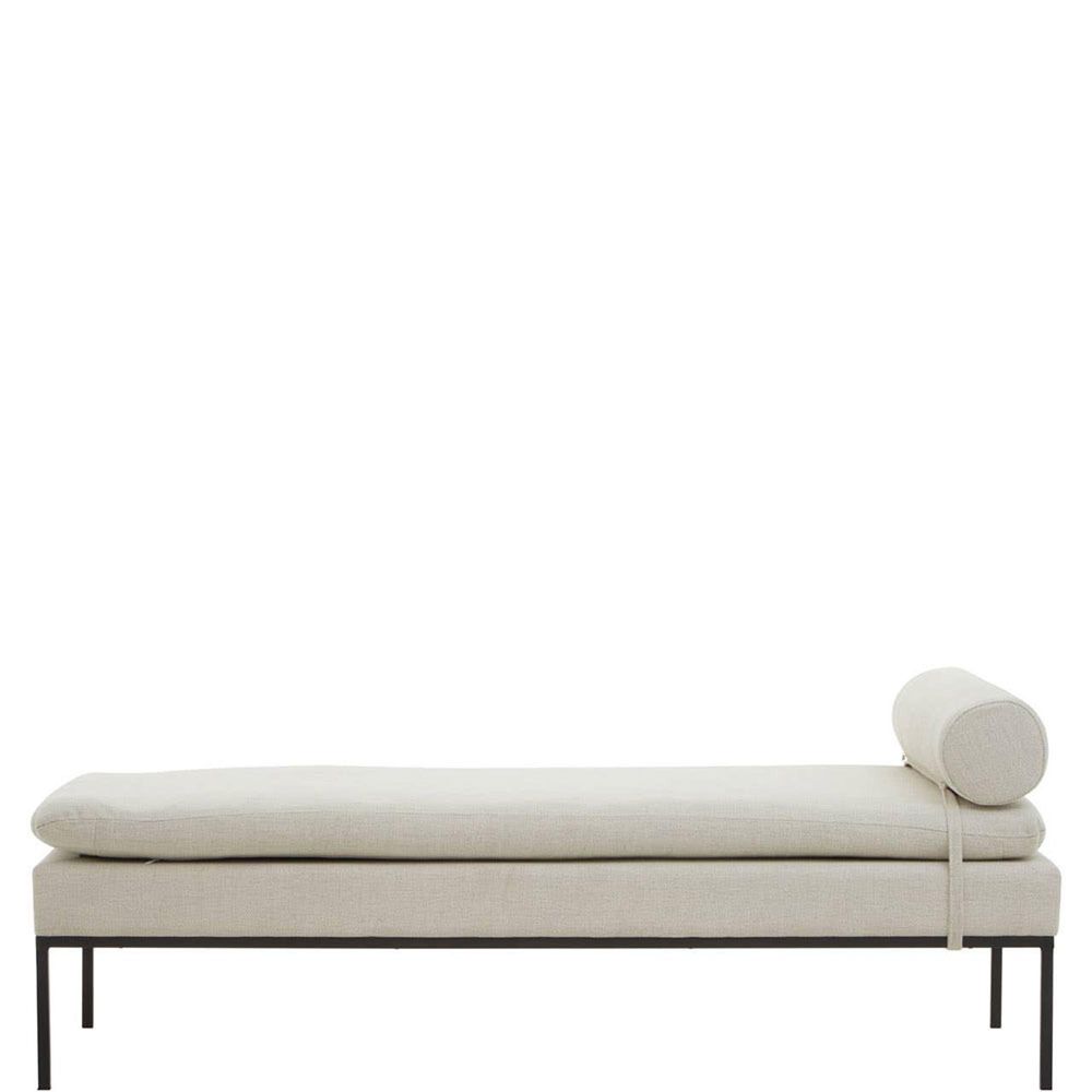 Item Code: 5528186 The Harley day bed offers comfort in a sleek design with natural colour and black metal legs.This day bed has a contemporary aesthetic with a minimalist profile owing to its edgeless platform and slender legs. The fabric blends style and comfort with its natural colour and soft thick padding.