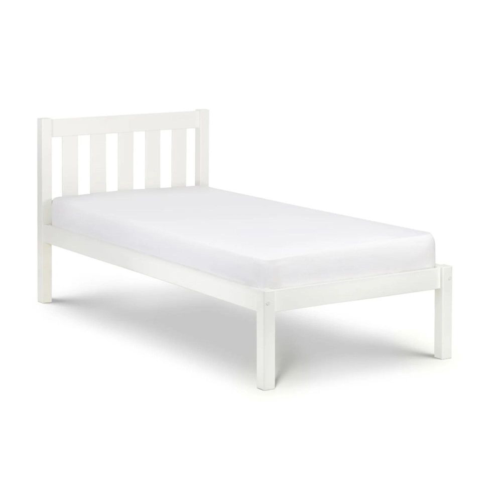 Item Code: LUN001 Crafted from solid pine with a surf white lacquer, the Luna bed is pereft for a wide range of traditional and contemporary bedroom decor with its simple, yet stunning design. Offering a strong, durable construction, this bed features a solid slatted base, ensuring a comfortable night's sleep. The perfect match for the Julian Bowen Maine Bedroom collection.