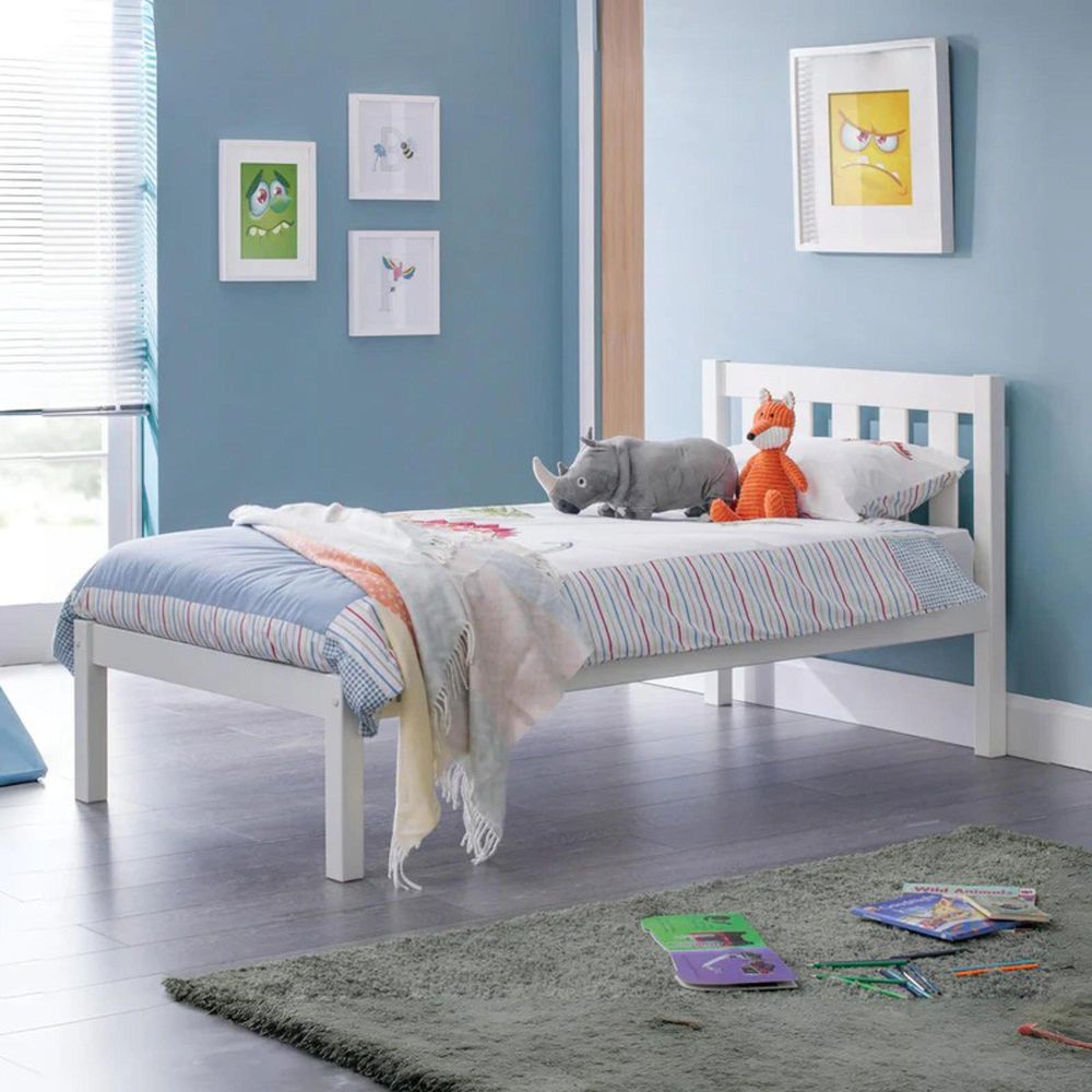 Item Code: LUN002 Crafted from solid pine with a dove grey lacquer, the Luna bed is pereft for a wide range of traditional and contemporary bedroom decor with its simple, yet stunning design. Offering a strong, durable construction, this bed features a solid slatted base, ensuring a comfortable night's sleep. The perfect match for the Julian Bowen Maine Bedroom collection.