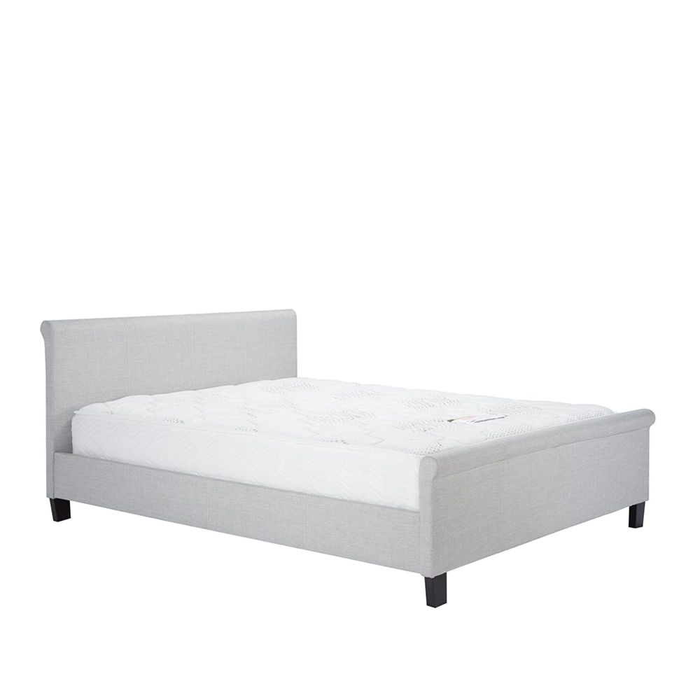 Item Code: STRB4GRY Modern and stylish the Stratus bed offers comfort with its luxury fabric finish adding a touch of class to the bedroom.Upholstered in polyester with complementary dark rubberwood feet the Stratus is available in a stylish grey fabric.This frame has a sprung slatted base to give natural bounce adjusting to where pressure is most exerted for greater comfort.The maximum weight load for the 4 frame is 300 kg the 4'6 frame is 400 kg and the 5' frame is 450 kg.Please note: Birlea beds are only suitable for a UK standard size mattress and the recommended maximum mattress height is 3050 mm.