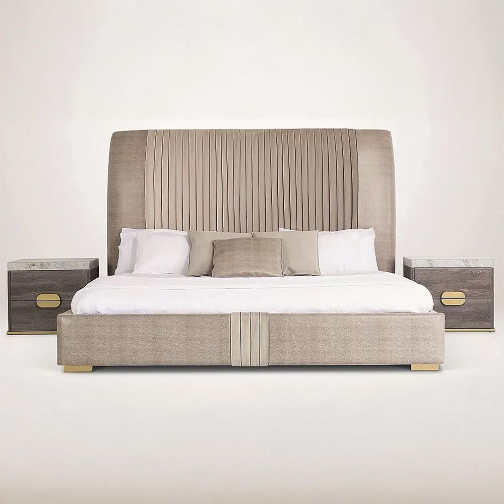 Item Code: The Westin collection is a unique creation that remind us that objects are more than objects-they complement our lives and help us to create the stories of our lives-memories. We don't often think about how much our physical surroundings interplay with our everyday and our emotions. The stunning metal handles, the sexy upholstered bed, the gorgeous covers and the sophisticated marble tops will not go unnoticed.Upholstered bed with metal feet in polished steel (PS) or any metallic finishes.The height of the bedstead from the ground is 27cm, Legs are 4cm and from the legs upto the slat is 23cmMattress is not included.This is a Made to Order itemAll Made to Order items are manufactured as per the order supplied by you.We are unable to accept cancellation or accept any extra cost that may incur due to wrong information provided by you at the time you placed the order.We will confirm all sizes/colours/finsihes in written email (order confirmation) with you before going ahead with production of your order.