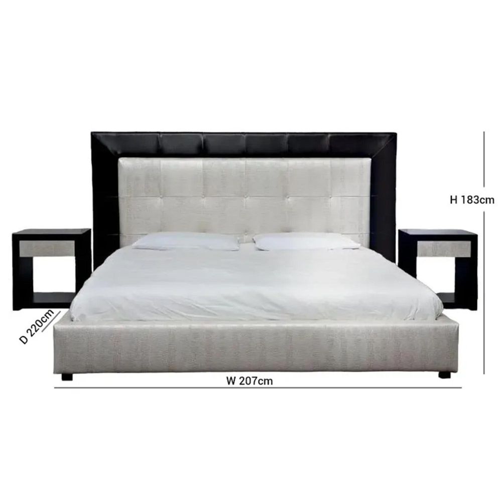 Item Code: Upholstered Leather Bed. The high headboard has a large upholstered frame. Headboard inside crsytal buttons also available.Mattress is not included.This is a Made to Order itemAll Made to Order items are manufactured as per the order supplied by you.We are unable to accept cancellation or accept any extra cost that may incur due to wrong information provided by you at the time you placed the order.We will confirm all sizes/colours/finsihes in written email (order confirmation) with you before going ahead with production of your order.