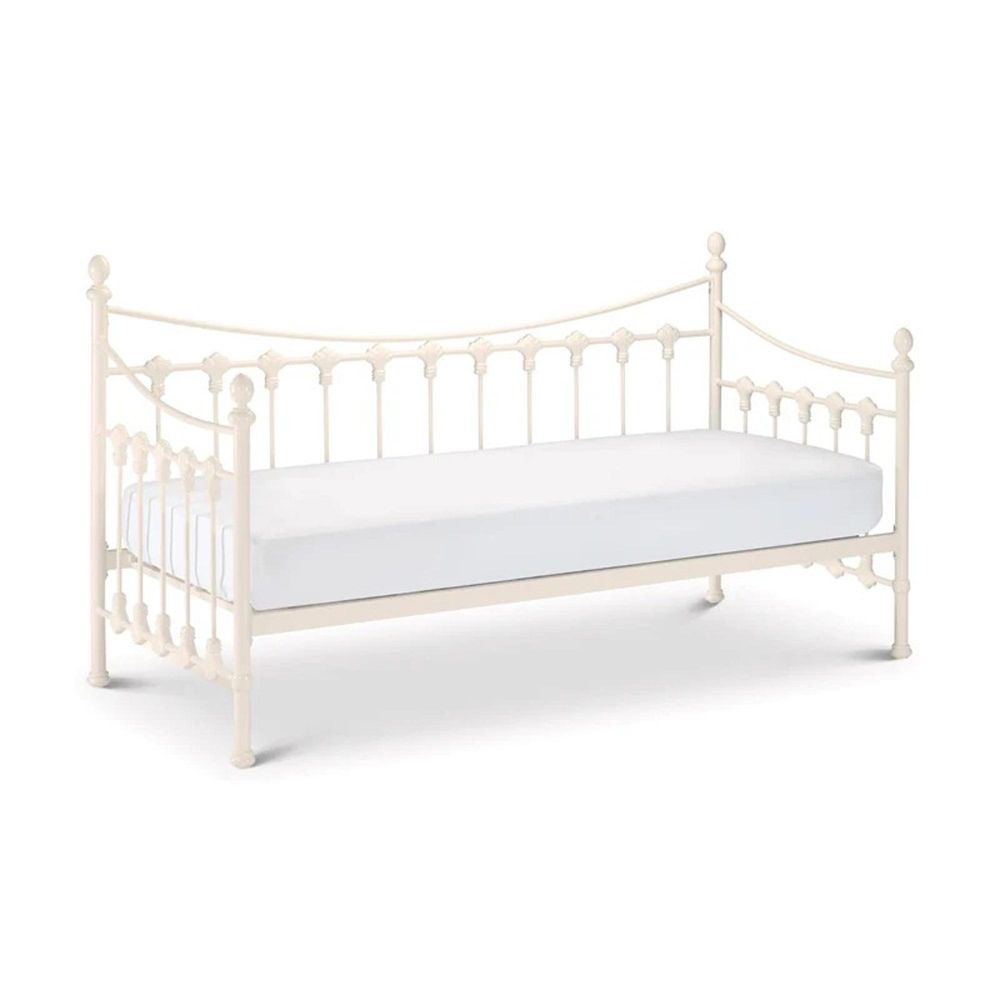 Item Code: VER002 An elegant interpretation of a great classic design offering a full 90cm sleeping or sitting space. Finished in a stone white eggshell textured lacquer and incorporating a sprung slatted base.