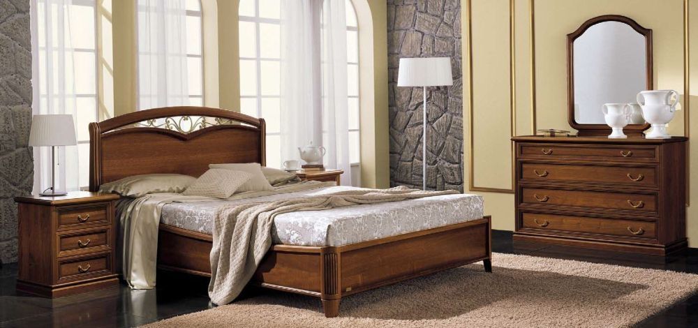 Item Code: 085LET.17NO/000RET.184O Curvo Fregio hand crafted ornament in cast iron framed by curved solid wood rounded rail to create a unique elegant headboard NOSTALGIA and walnut wood veneer Select Walnut wood veneers strips joined with thermal glue.Ayous solid wood cornices manually varnished and finished with 60 gloss mat polyester, semi-open pore with antique effect. Beds available with ring solution. Headboards version Fregio, Legno, Gendarme and upholstered in ecoleather; sliding and hinged door wardrobes, seven drawer chest, framed mirrors, armchairs and much else. Nostalgia, a classic model of Italian production, branded Camelgroup. Additional articles Writing desks, TV servers, seven-drawer chests, chairs and other items make collection Nostalgia complete. The use of solid wood and veneers and the variety of solutions for your home are the key points of this collection. Nostalgia collection is entirely Made in Italy and bears the brand name Camelgroup which confirms, with this collection, its choice for quality and flexibility in the classical line. Since 1983 Camelgroup manufactures and exports 100% of its products all over the world where the Company is known and appreciated. Nostalgia collection, along with all the other Camelgroup products is designed and produced in Italy. All its components are of Italian origin.This is a Made to Order itemAll Made to Order items are manufactured as per the order supplied by you.We are unable to accept cancellation or accept any extra cost that may incur due to wrong information provided by you at the time you placed the order.We will confirm all sizes/colours/finishes in written email (order confirmation) with you before going ahead with production of your order.