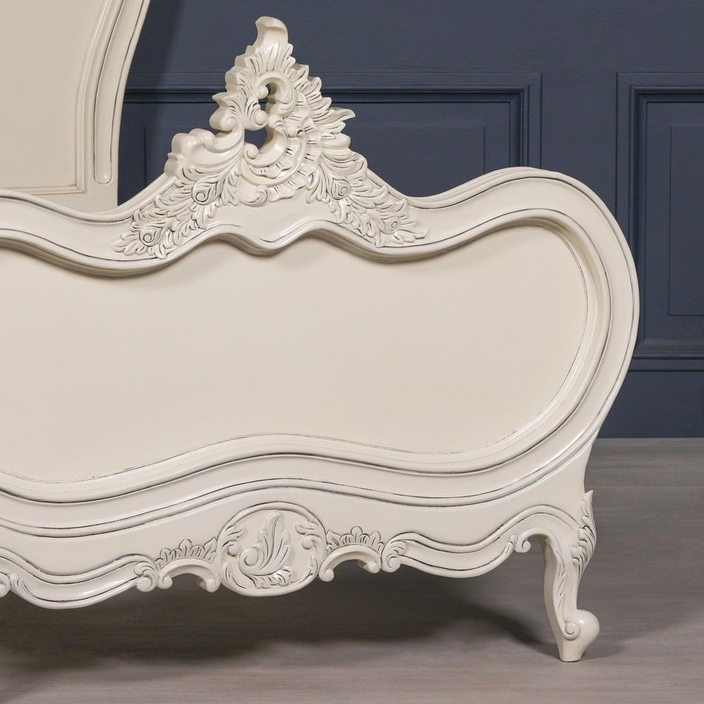 French Style Lomira Bed - Cream Mahogany - Carved - Sizes Available