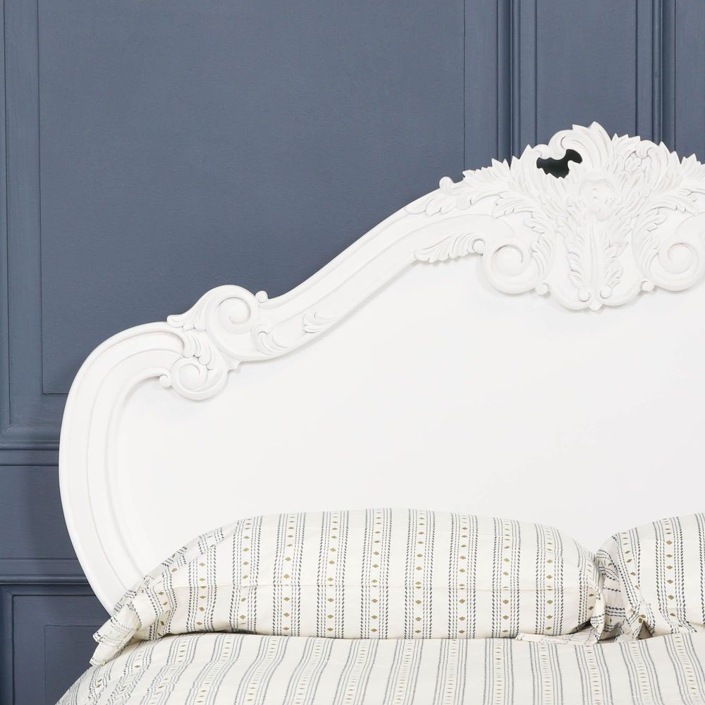 French Rose Cherub Bed - White Mahogany - Carved - Sizes Available