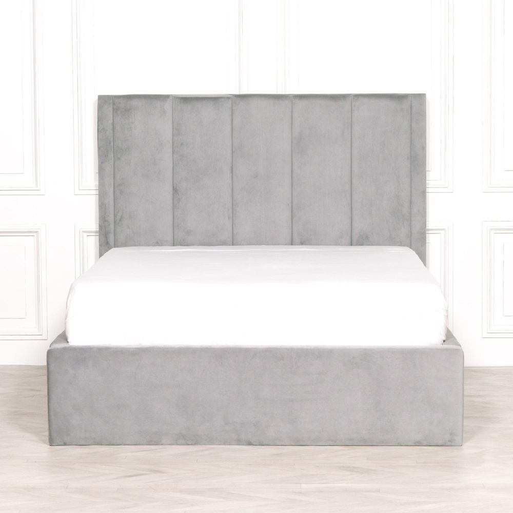 Grey Velvet Bed - 5ft King Size