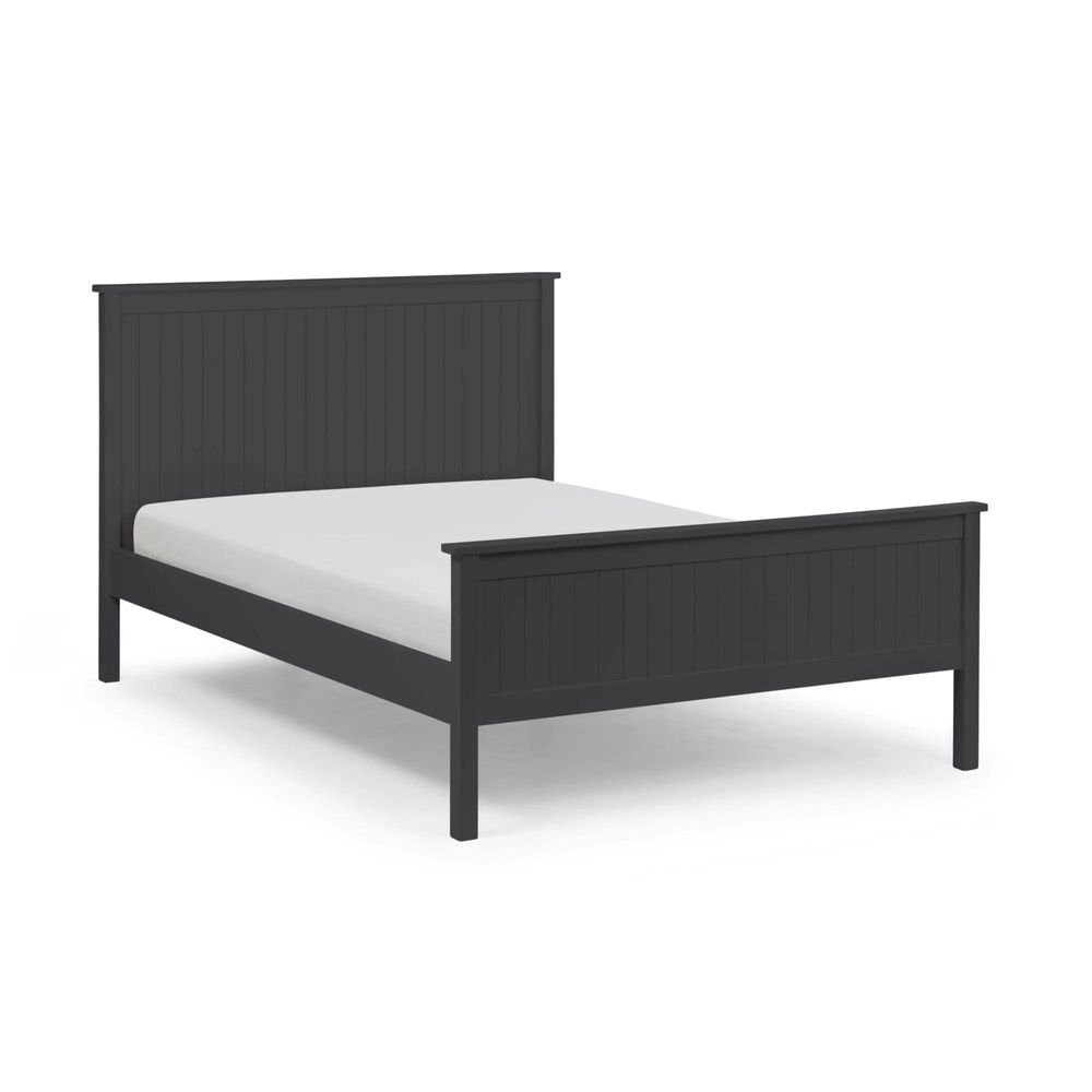 Item Code: MAI158 An elegant and simple New England style bed whose characteristic panelling is beautifully finished in an exquisite anthracite lacquer to create a soothing and refined aesthetic with timeless appeal. A solid slatted base ensures supreme comfort and prolonged mattress life.