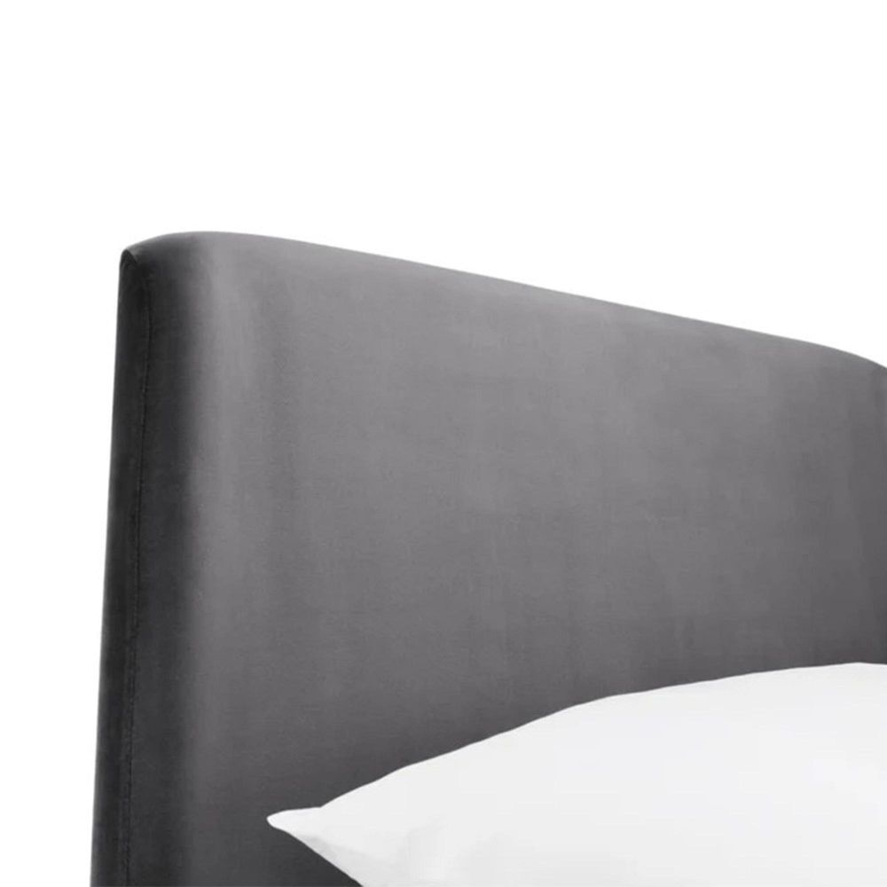 Item Code: FRI011 Featuring a gorgeous, curved headboard, the Frida bed exudes elegance and comfort. The black contrasting legs paired with the smooth velvet gives a modern look and is likely to be the statement piece in any bedroom. It is also available in an ottoman version, perfect for those with smaller bedroom areas as it provides that extra storage space. Available in two beautiful shades of teal and grey.