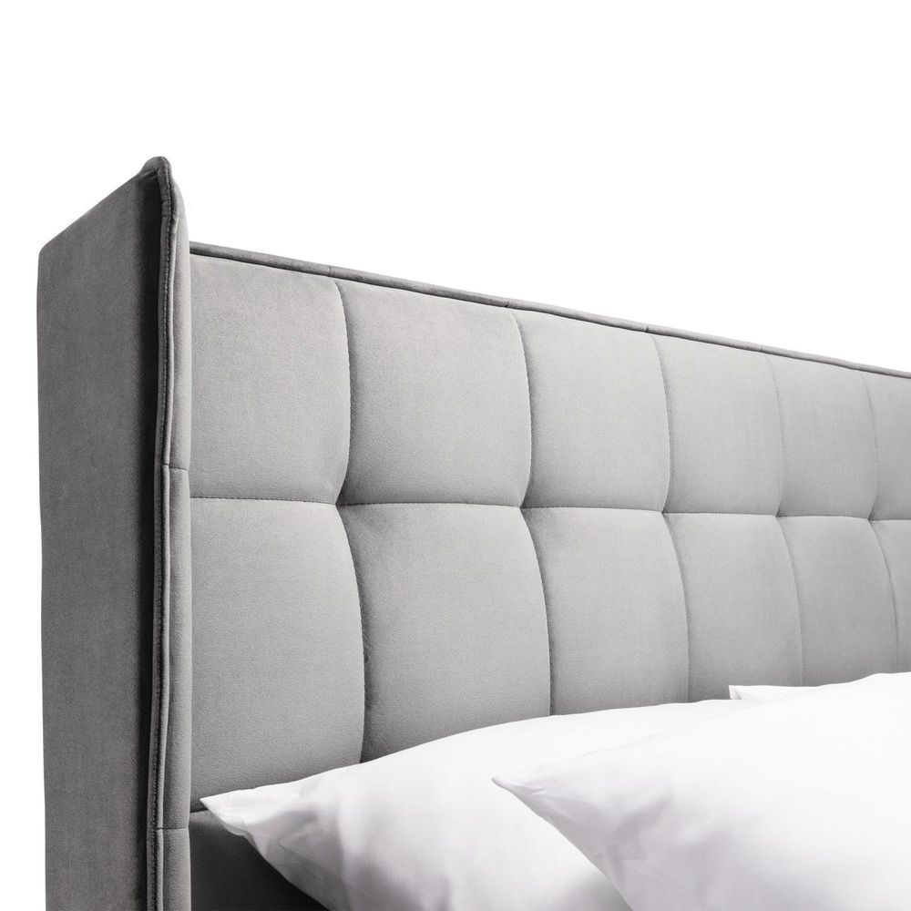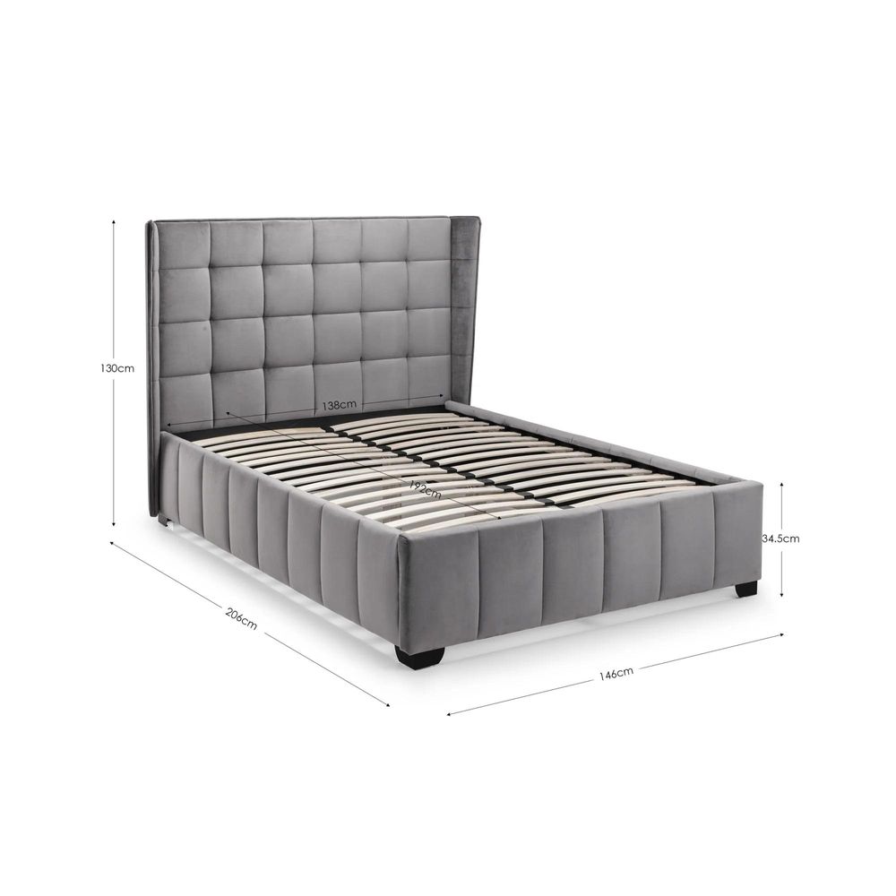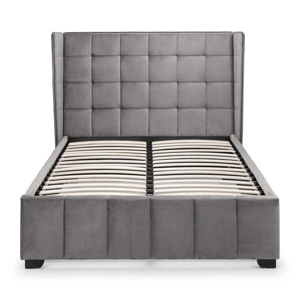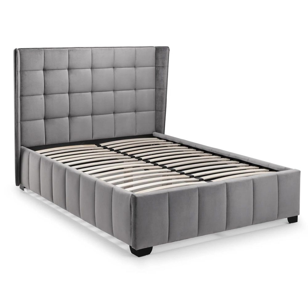 Item Code: GAT001 Inspired by elegant style and grace, the Gatsby bed features a beautiful, winged headboard. Finished in a gorgeous grey velvet, this bed is both aesthetically pleasing and provides a large amount of storage space too. Gatsby is available as a normal bed or ottoman bed.