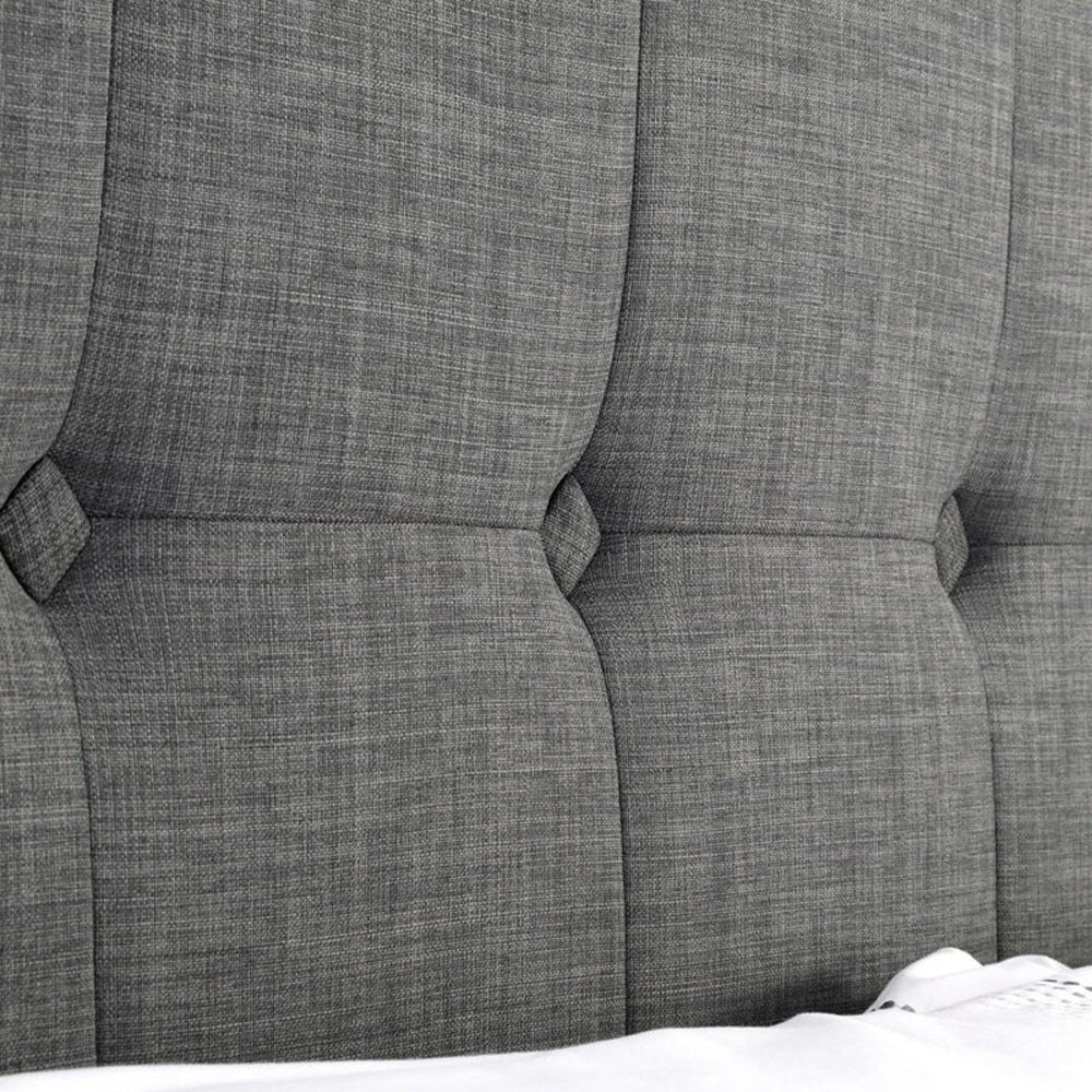 Item Code: SOR101 A contemporary high headboard bed design with diamond shaped feature buttoning. Upholstered in a slate grey linen fabric.