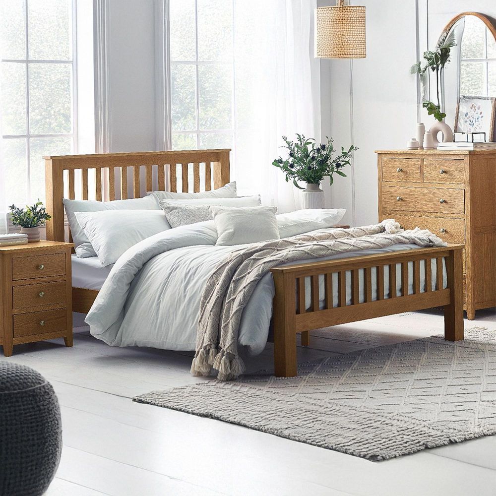 Mallory Slatted Bed - Oak - Sizes Available