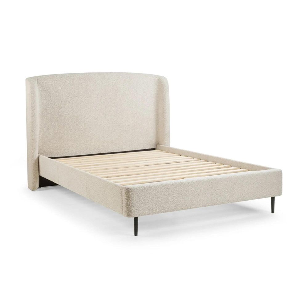 Item Code: EDE001 The Eden Boucle Bed excels in class and elegance bringing a sense of style and comfort to any modern bedroom space. Featuring a curved headboard and finished in a stunning ivory boucle with black legs. Available in sizes 135cm and 150cm.