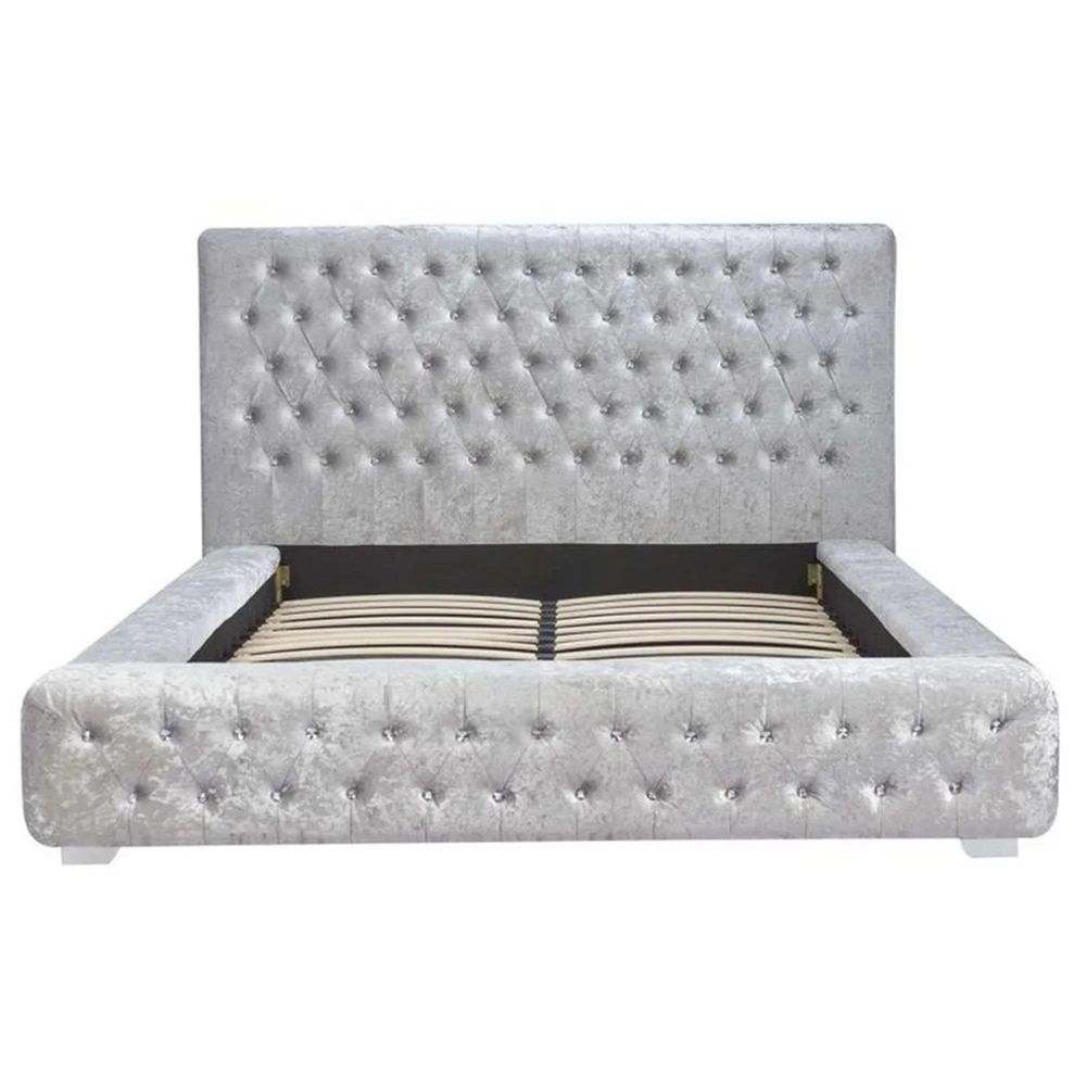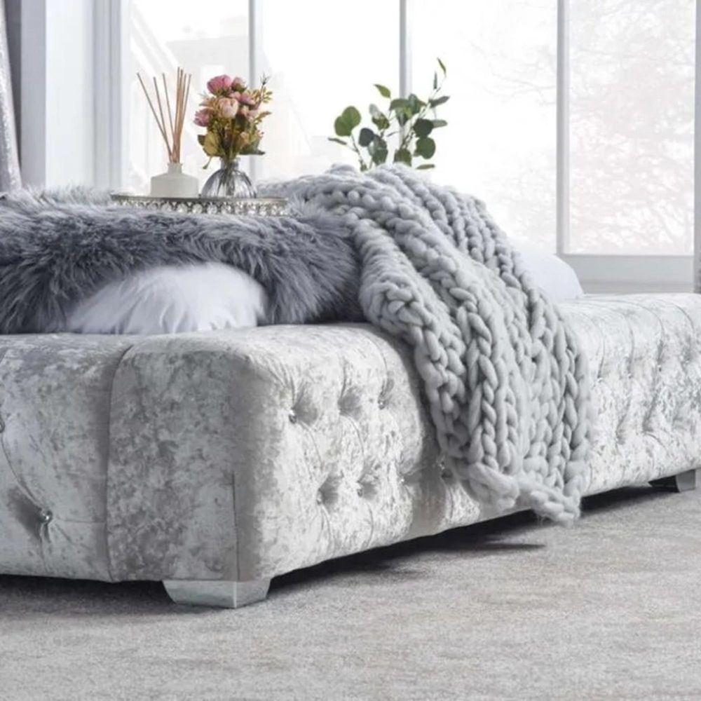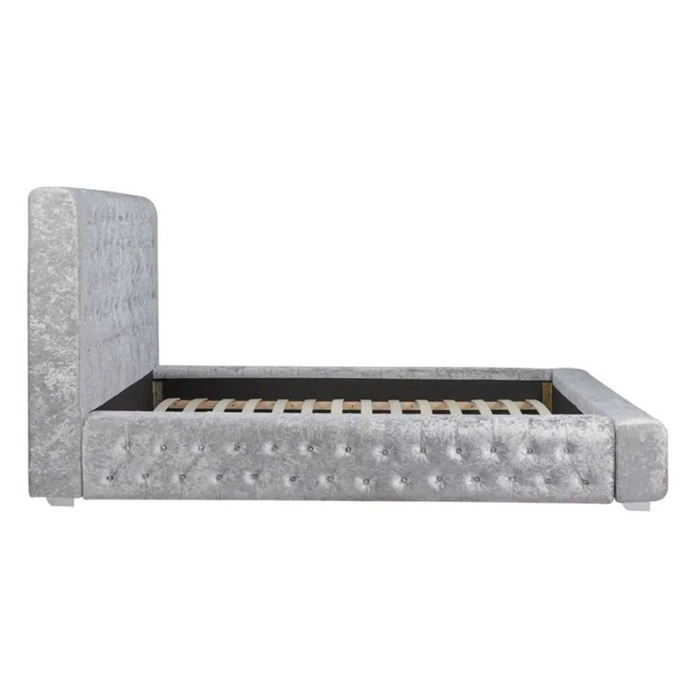 Grande Bed - Steel Crushed Velvet Fabric - Sizes Available