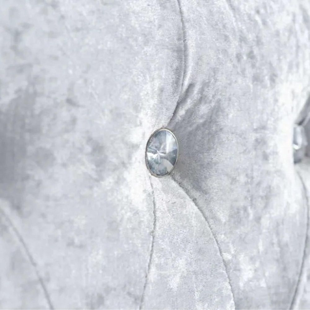 Item Code: GRAB46STE The Grande ambassador bed exuberates a majestic and royal aura with its beautifully diamond buttoned headboard, upholstered side panels and footboard to match. The Grande features a stunning crushed velvet fabric that is a standout piece of furniture in any bedroom. The Grande bed frame is upholstered in polyester with silver feet and comes in a beautiful crushed steel velvet. This frame has a sprung slatted base sunken into the bed that offers a natural bounce, adjusting to where pressure is most exerted to provide greater comfort. The maximum weight load for the 4'6ft frame is 300kg, the 5ft frame is 400 kg, 6ft frame is 450 kg.