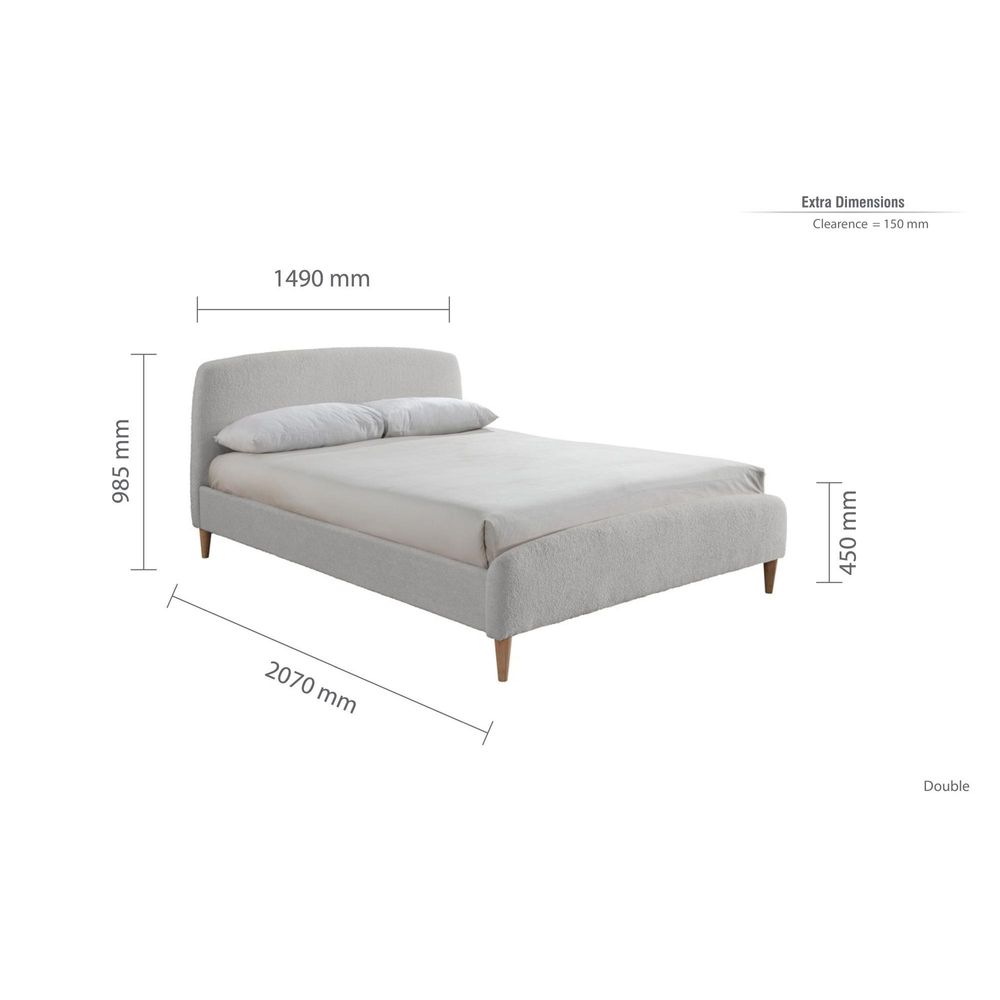Item Code: OTLB46DVG Contemporary yet charming, the Otley bed frame is a beautiful choice for any bedroom. Gentle curves to the headboard and foot end, along with stunning teddy bear fabric compliments the light wood feet. The Otley fabric bed features a unique super soft and super comfy teddy bear fabric, sure to impress. This frame has a sprung slatted base with natural bounce, adjusting to where pressure is most exerted to provide greater comfort.The maximum weight load for the 4ft 6in frame is 300 kg, and the 5ft frame is 400 kg.