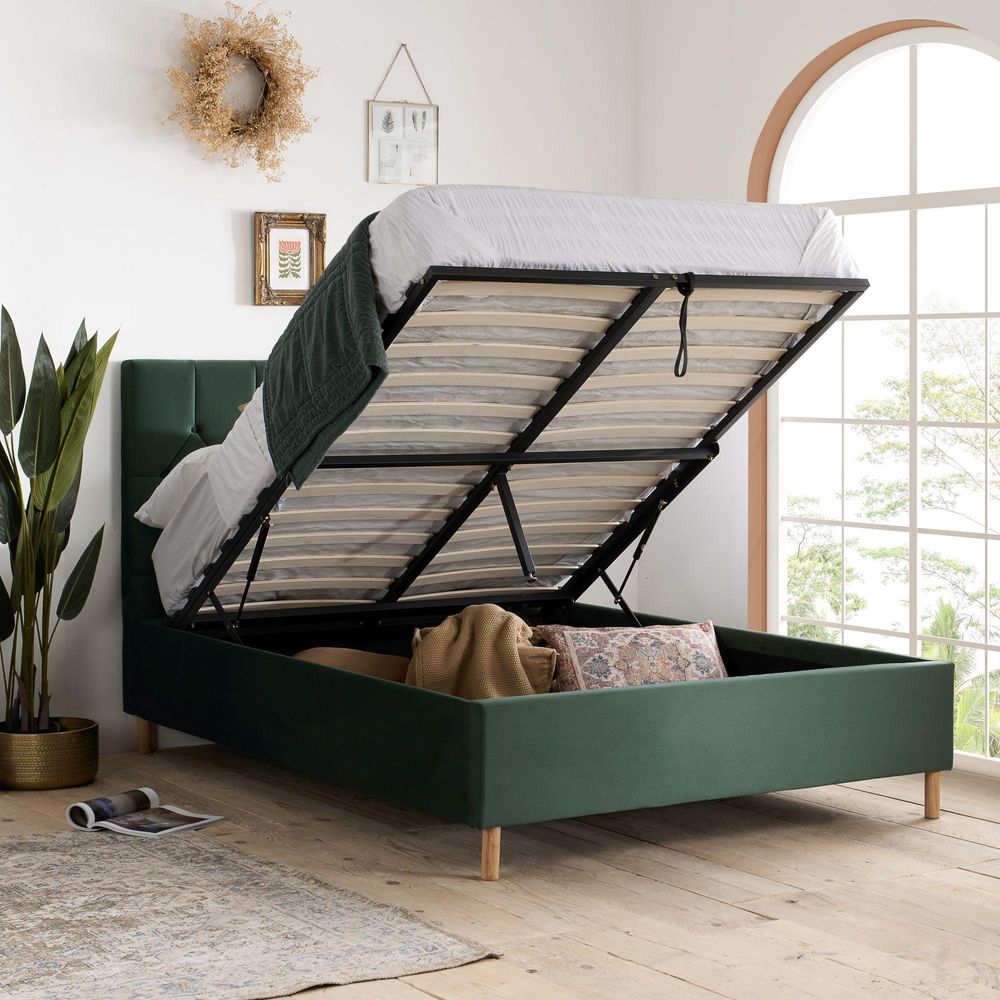 Loxley Ottoman Storage Bed - Green Fabric - Sizes Available
