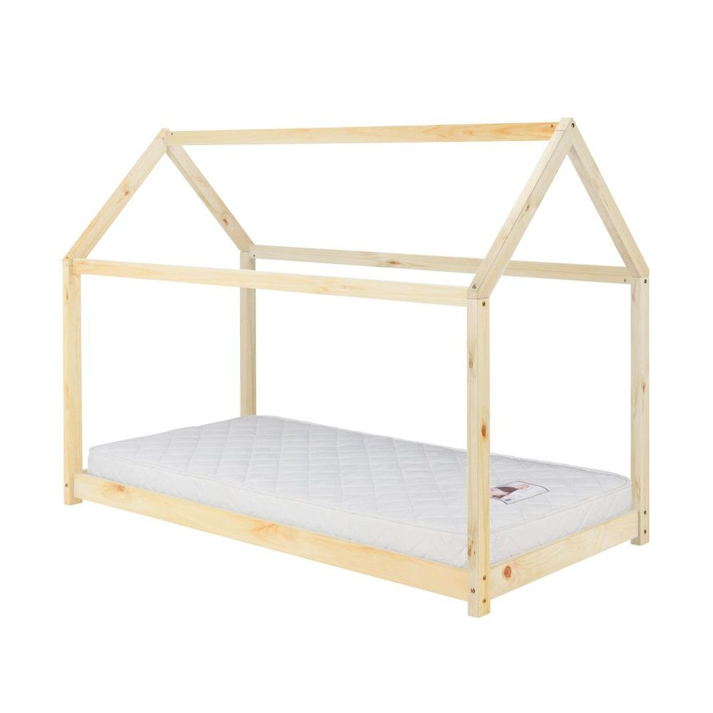 Item Code: HOUB3PINV2 It's time for your kid's independence with their very own house (bed). The wooden bed frame in the shape of a house is the perfect bed for your little one's bedroom. This frame has a solid slatted base for firmer support, allowing air to circulate beneath the mattress. The maximum weight load for this bed is 100 kg.