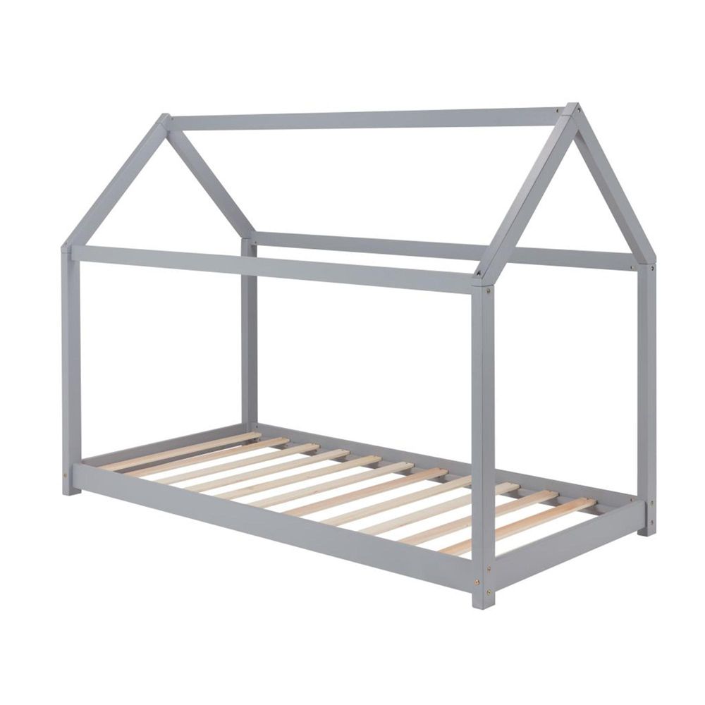 Item Code: HOUB3GRYV3 It's time for your kid's independence with their very own house (bed). The wooden bed frame in the shape of a house is the perfect bed for your little one's bedroom. This frame has a solid slatted base for firmer support, allowing air to circulate beneath the mattress. The maximum weight load for this bed is 100 kg.