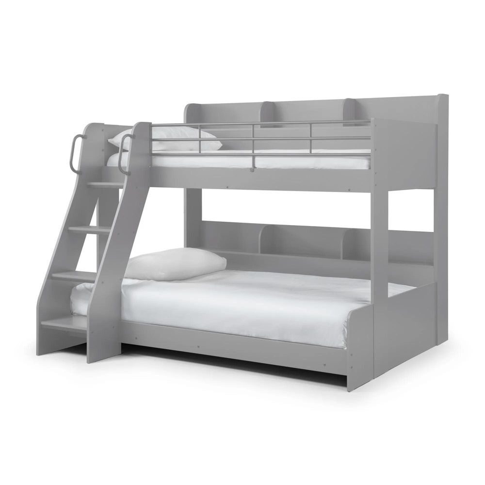 Item Code: DOM102 In a choice of white or light grey finish, the Domino Triple Sleeper is the perfect bed for your little ones. With the lower bunk accommodating two children, and the top bunk an additional one, Domino maximises floor space by combining three sleeping solutions using the space of one. Multifaceted and extremely functional in design, this bed can be adapted to suit your child?s needs. The classic design and finish of this bed means it is not limited to children?s bedrooms but is ideal for guestrooms too.