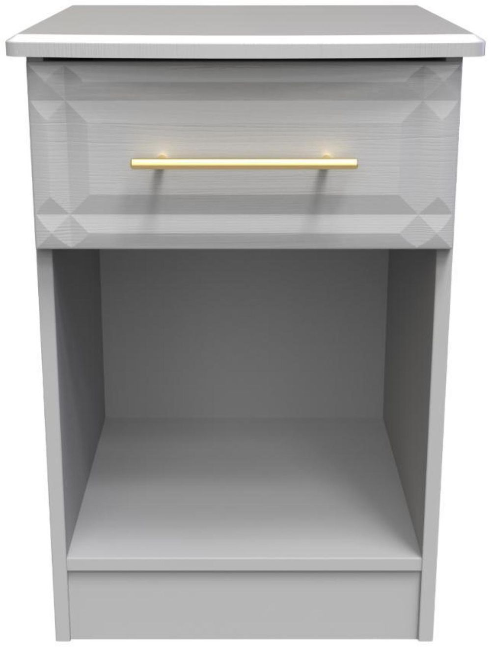 Chamfered edges combined with contemporary and modern styling create the Faye range. This stylish range is available in a selection of durable scratch resistant wood effect or matt finishes. With gold T-Bar handles on all doors and drawers.