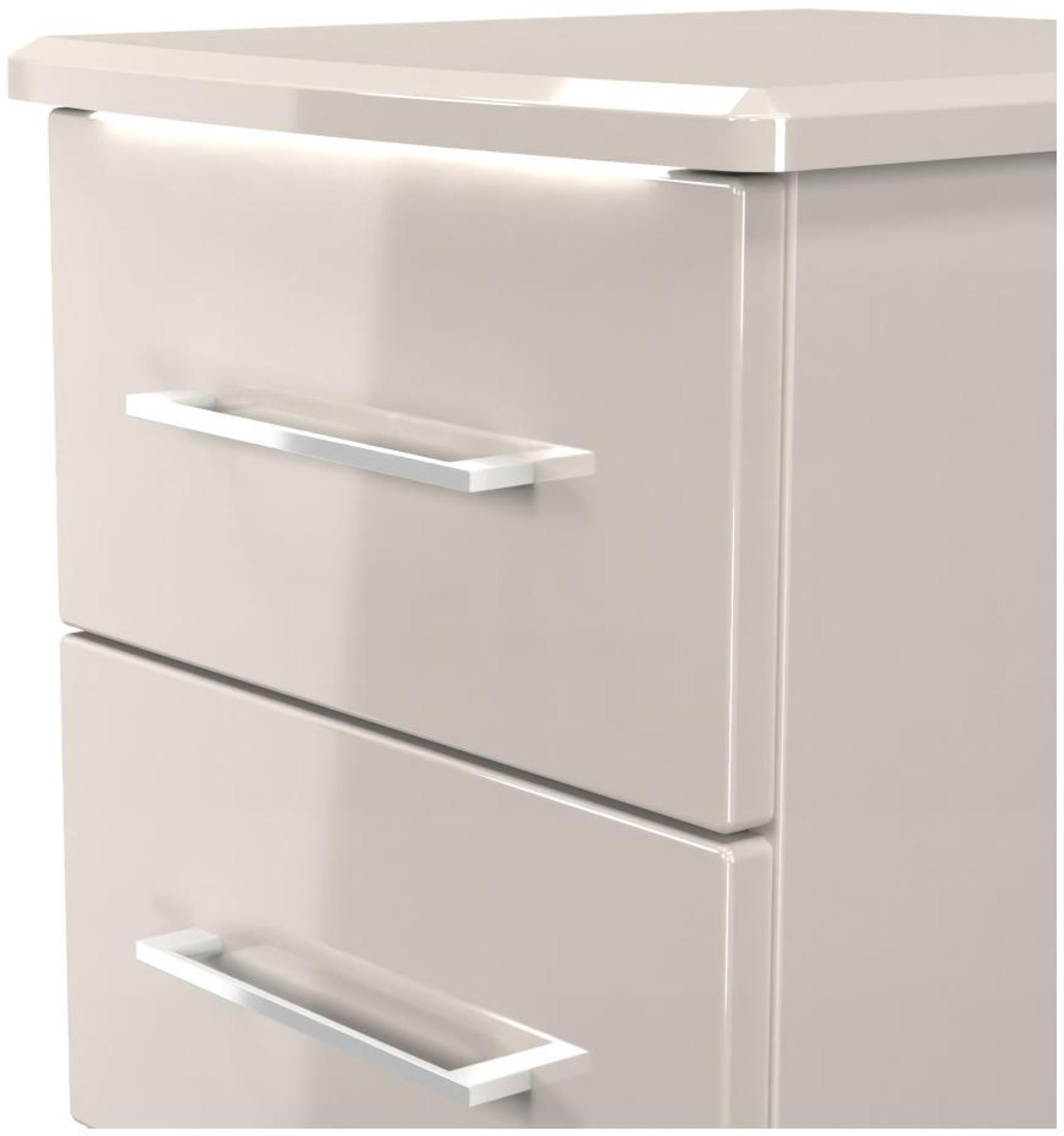 The 'Paris' range features sleek, high-gloss fronts, complemented by integrated LED lighting under the top surfaces. This creates a warm, inviting ambiance, perfect for any room.