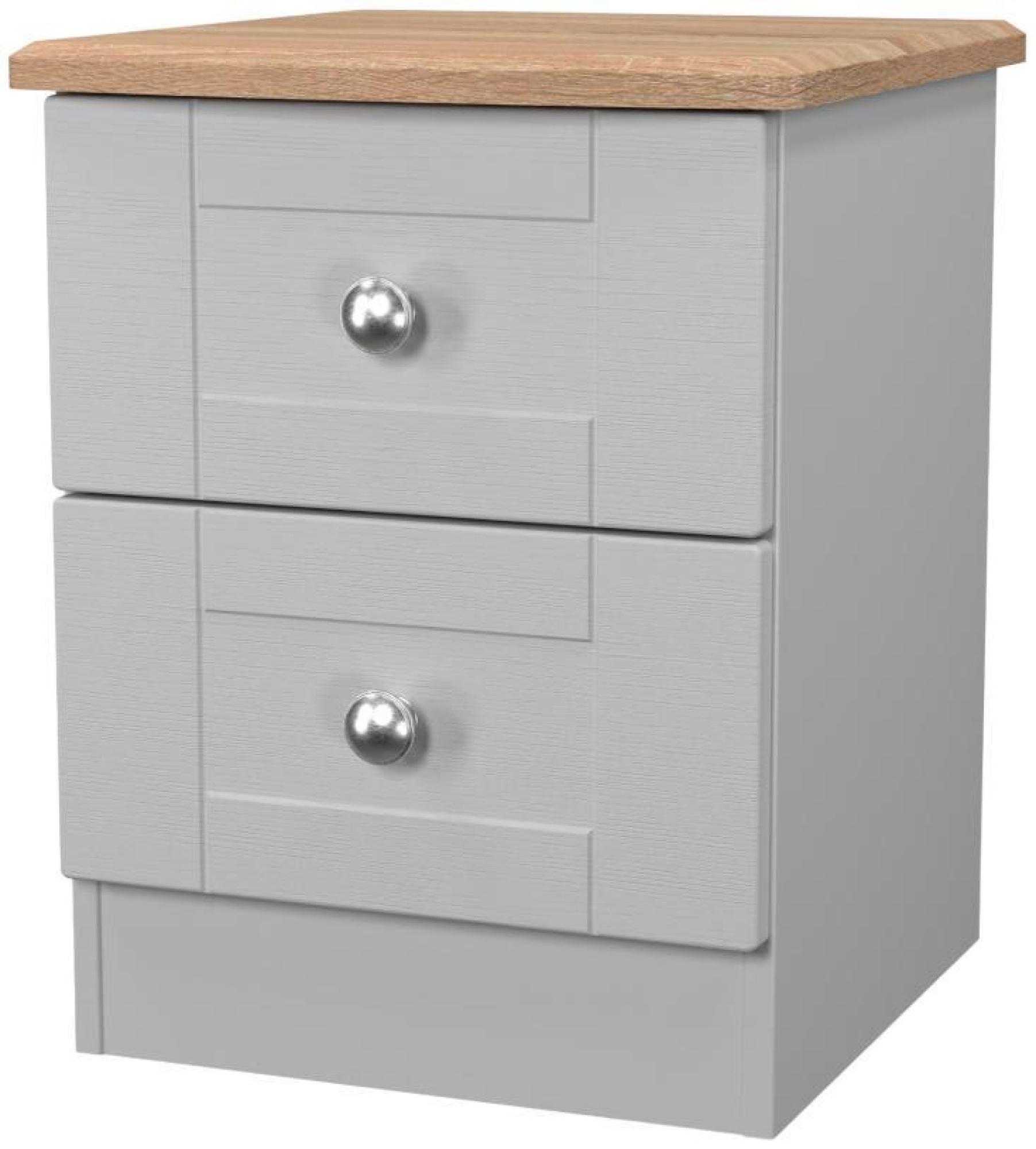 Sussex Bedside Cabinet - 2 Drawer - Grey and Oak
