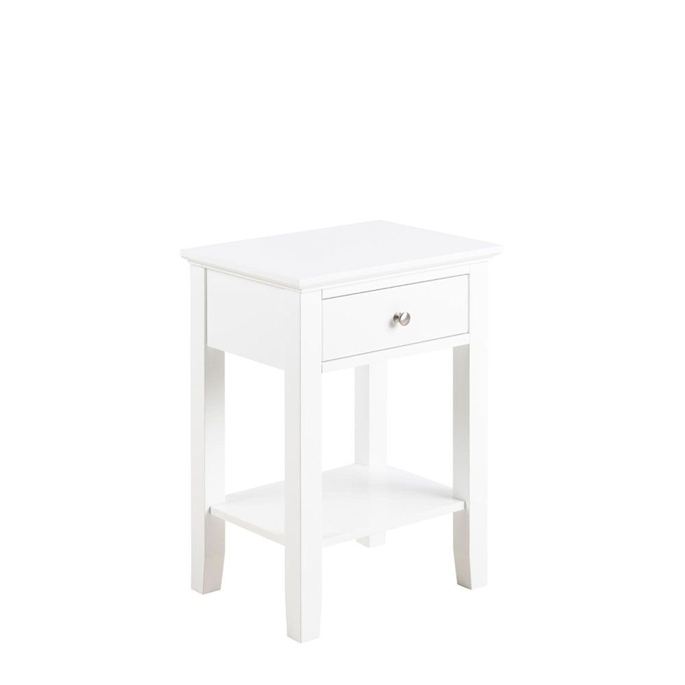 With this white bedside by your side, all your essentials remain organized, and your bedroom feels more serene. Made with a white painted surface, it conveys a clean aesthetic made with a touch of French country charm. Featuring a drawer to hide away your treasures and a shelf for your evening reads, it blends elegance with functionality.