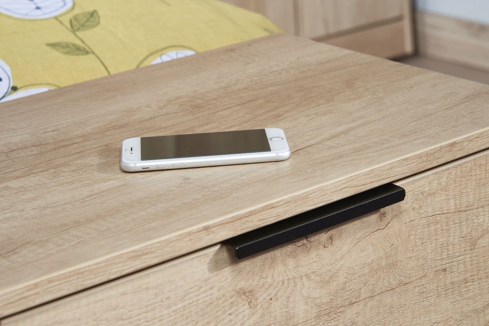 Hong Kong Oak Effect 2 Drawer Bedside Cabinet with Wooden Legs