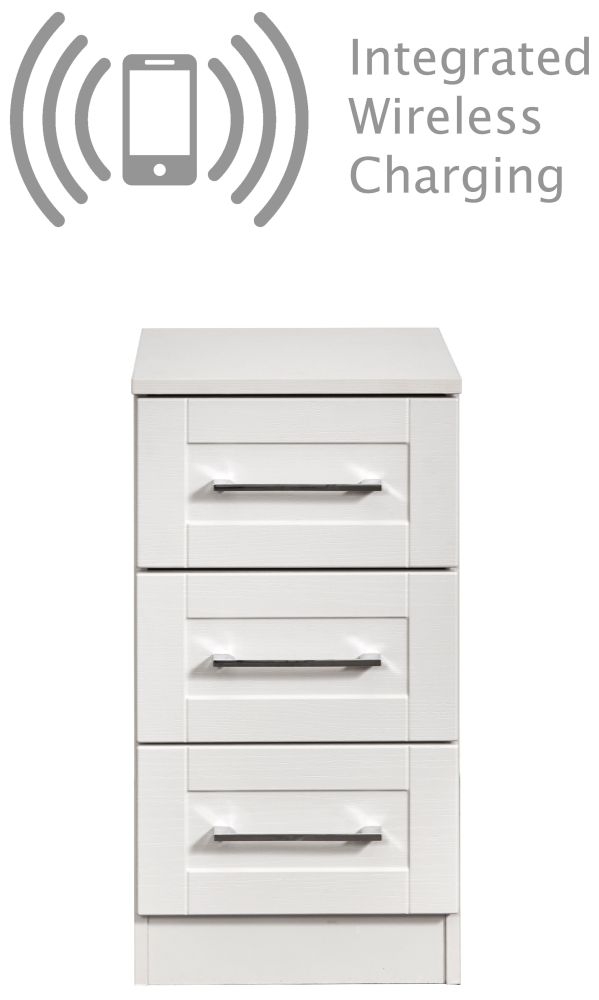 York White 3 Drawer Bedside Cabinet