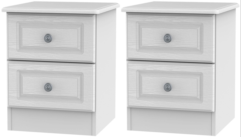2 X Pembroke White 2 Drawer Bedside Cabinet (Pair)