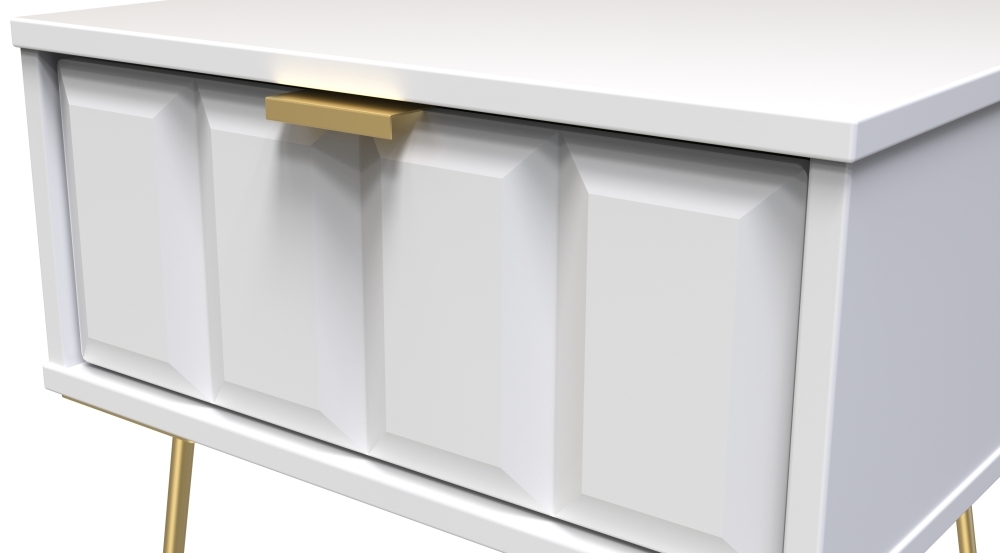Cube Bedside Table - 1 Drawer - with Gold Hairpin Legs - White