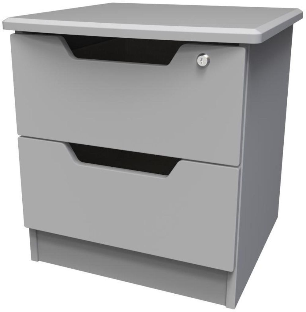 Bella Grey 2 Drawer Bedside Cabinet with Lock