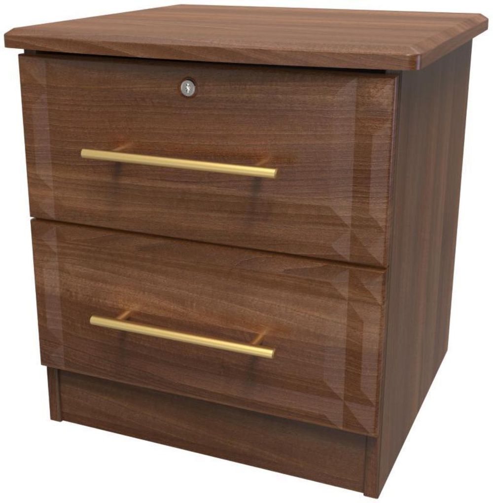 Faye Walnut Effect 2 Drawer Bedside Cabinet with Lock