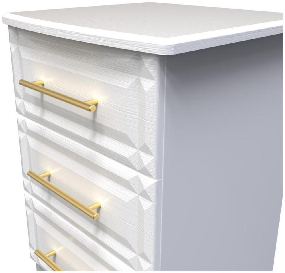 • Carcass: 18mm MFC furniture board, with ABS edging tapes (2mm)• Front: 18mm MDF , HTV Vinyl wrapped. With 2 mm edge. Routed pattern.• Construction: Glued, dowelled and screwed. Metal KD fixings, castors wheel• Handle: (Sherwood) metal ?T? bar, gold coloured bar. 235mm / 535mm• Drawer:18mm MFC, HTV Vinyl wrapped . 3mm hardboard base, chipboard wrap with a 15mm wall. Soft close.• Top: 18mm MDF, HTV Vinyl Wrapped• Drawer Runner: Soft close York runner