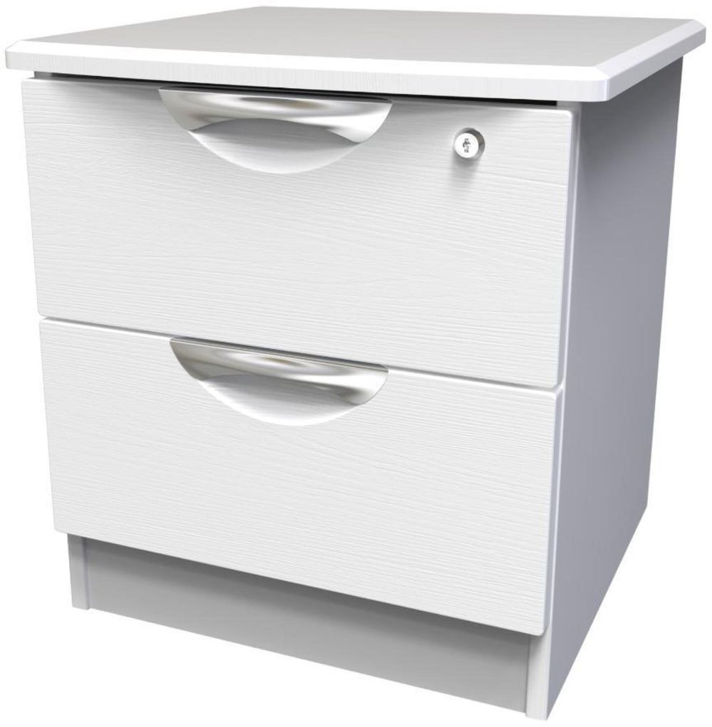 Flora White 2 Drawer Bedside Cabinet with Lock