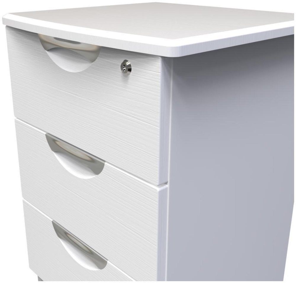 Flora White 3 Drawer Bedside Cabinet with Lock