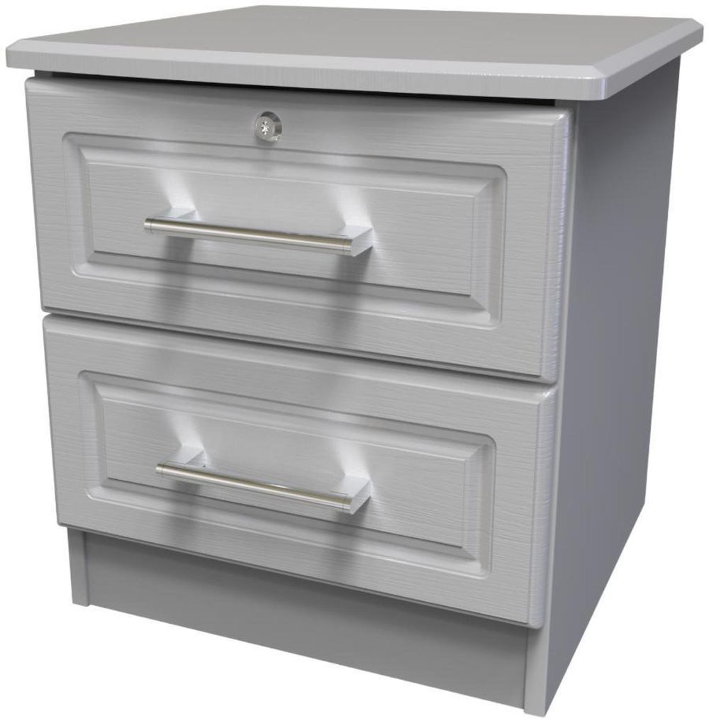 Gina Grey Ash 2 Drawer Bedside Cabinet with Lock