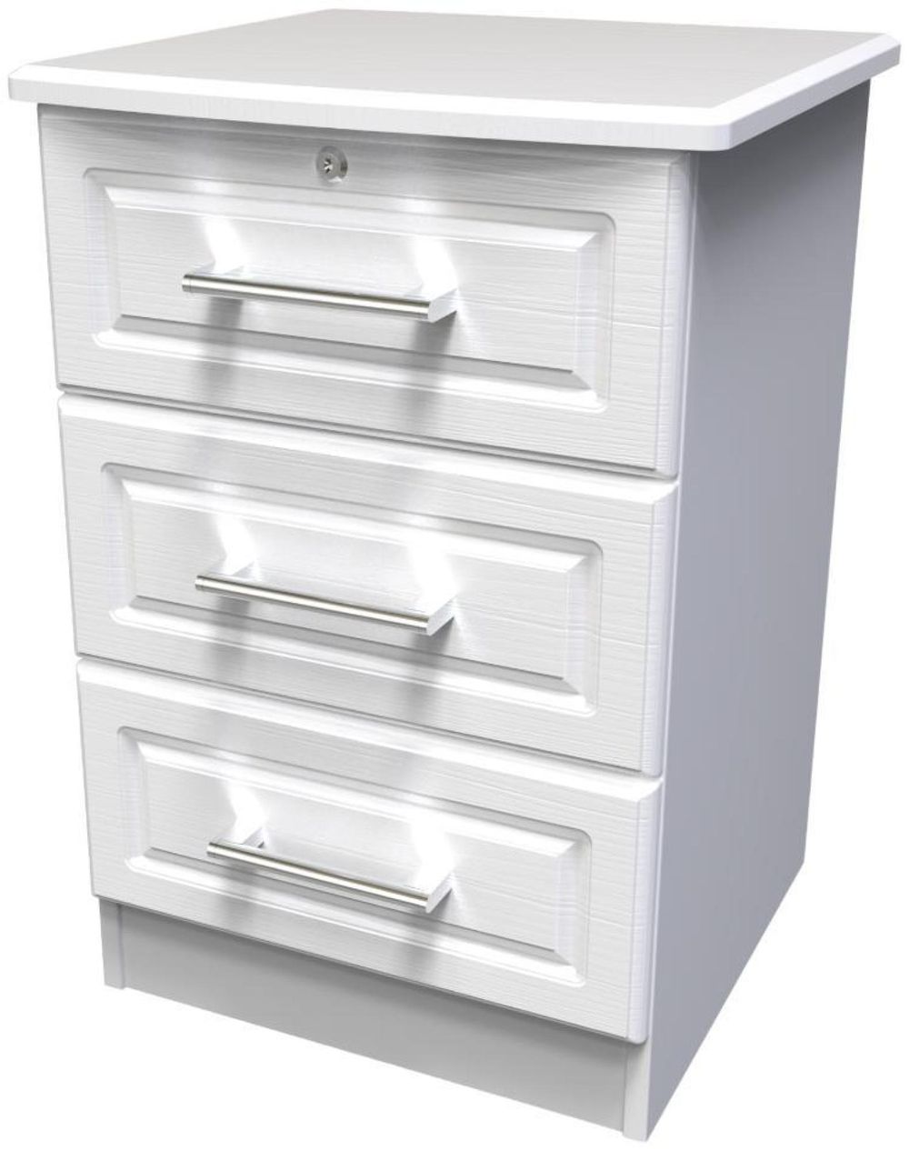Gina White 3 Drawer Bedside Cabinet with Lock