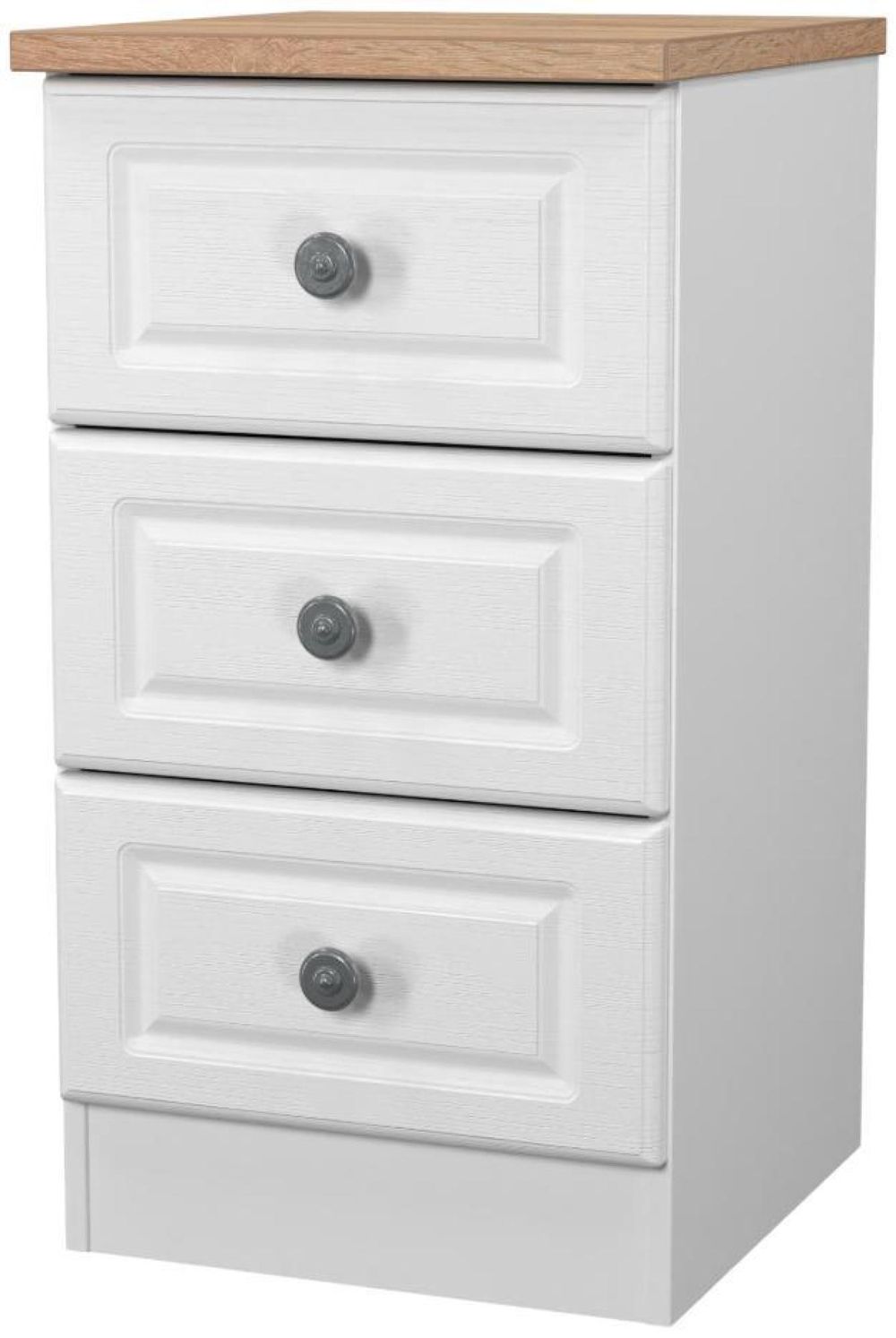 Norfolk White and Oak Effect 3 Drawer Bedside Cabinet