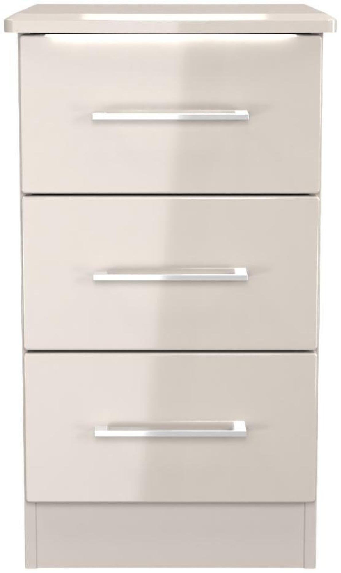 The 'Paris' range features sleek, high-gloss fronts, complemented by integrated LED lighting under the top surfaces. This creates a warm, inviting ambiance, perfect for any room.