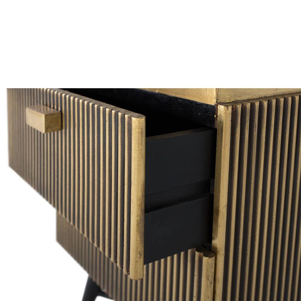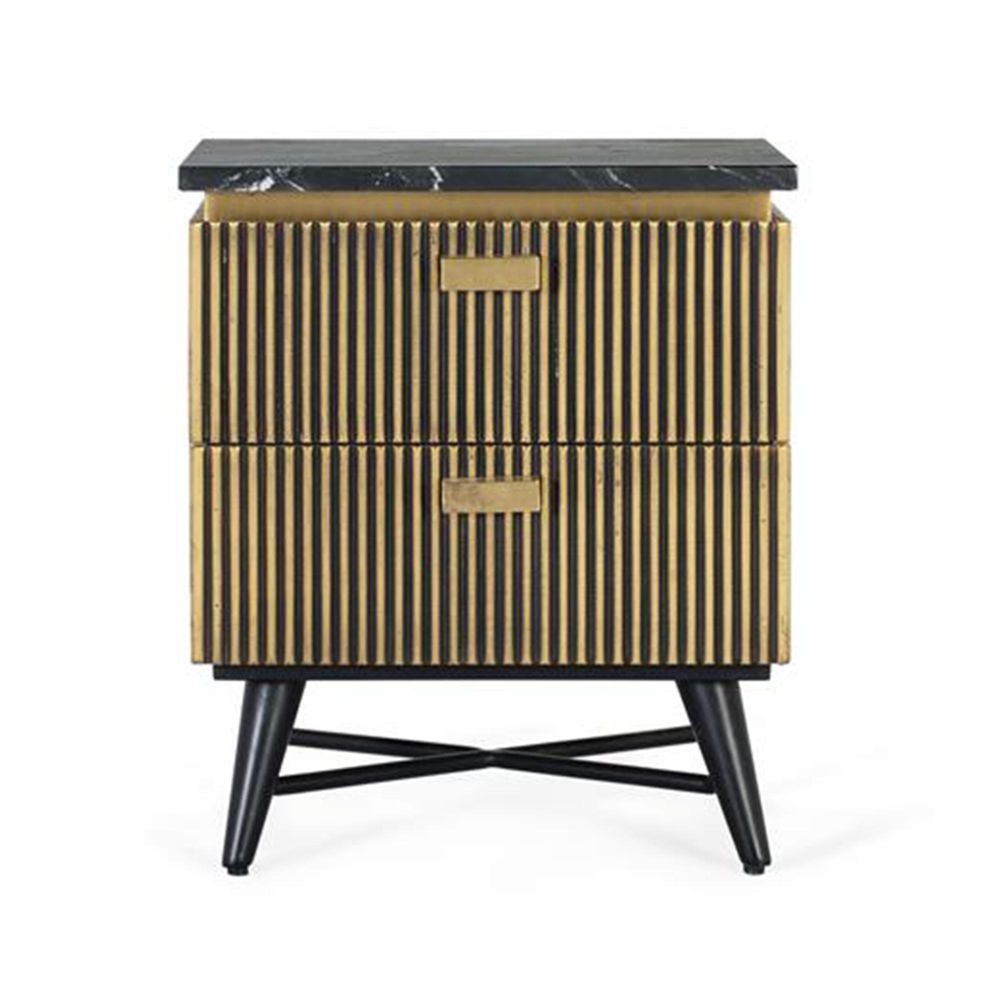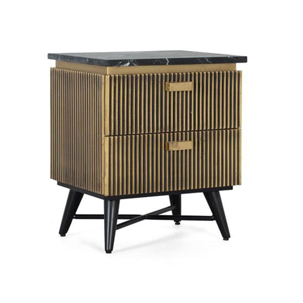Stephen Bedside Cabinet - Ribbed Brass - 2 Drawer - Black Marble Top