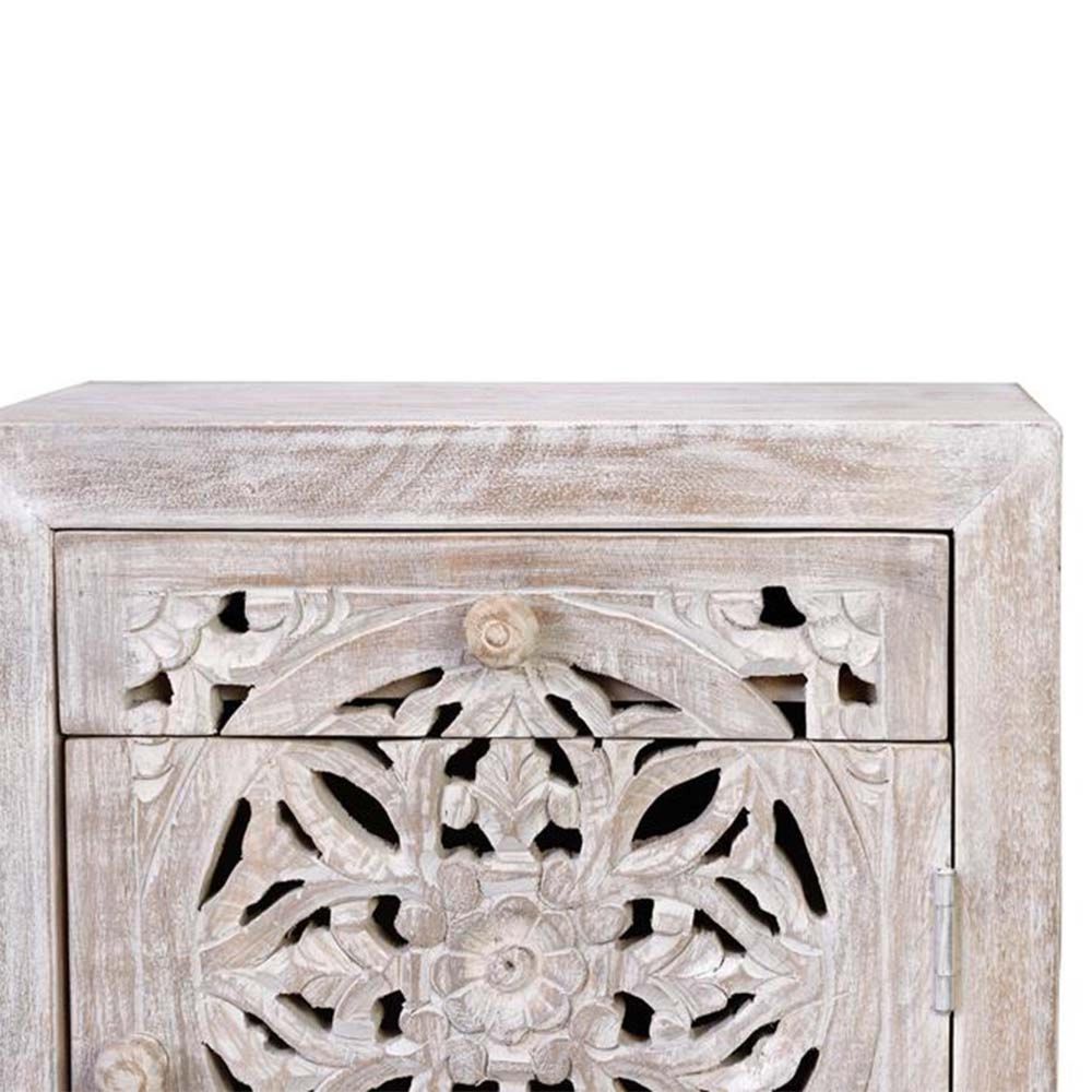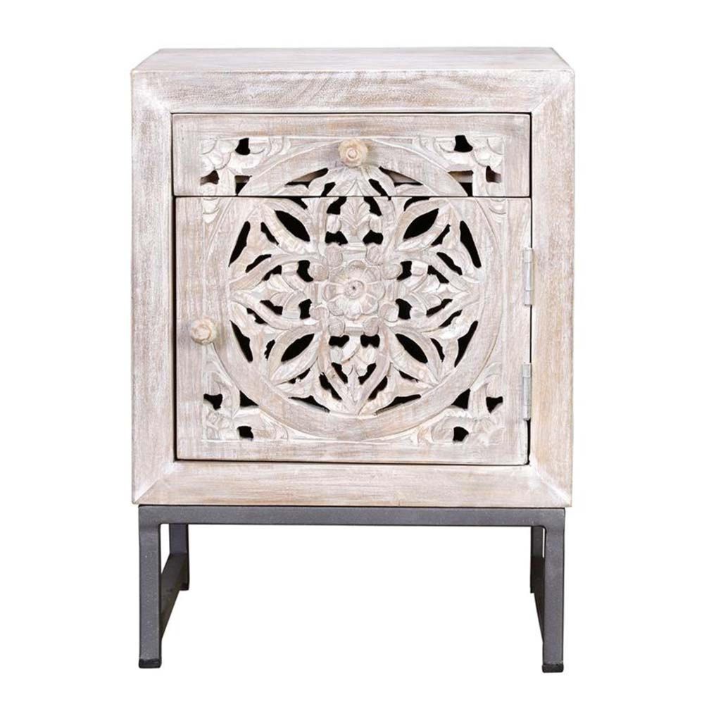 Quintana Bedside Cabinet - Washed Carved - Mango Wood - 1 Door