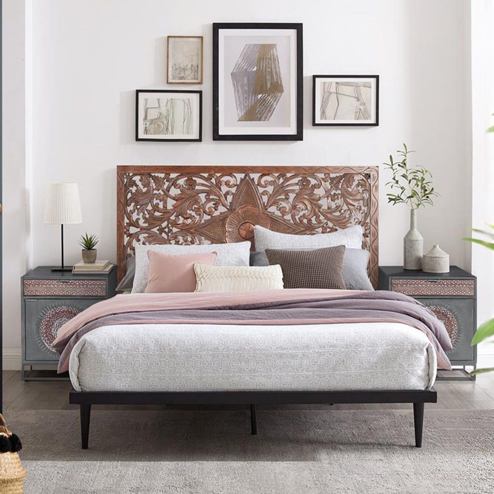 Item Code: 6988 Carved Mango Tree Wood Bedside With Metal Legs
