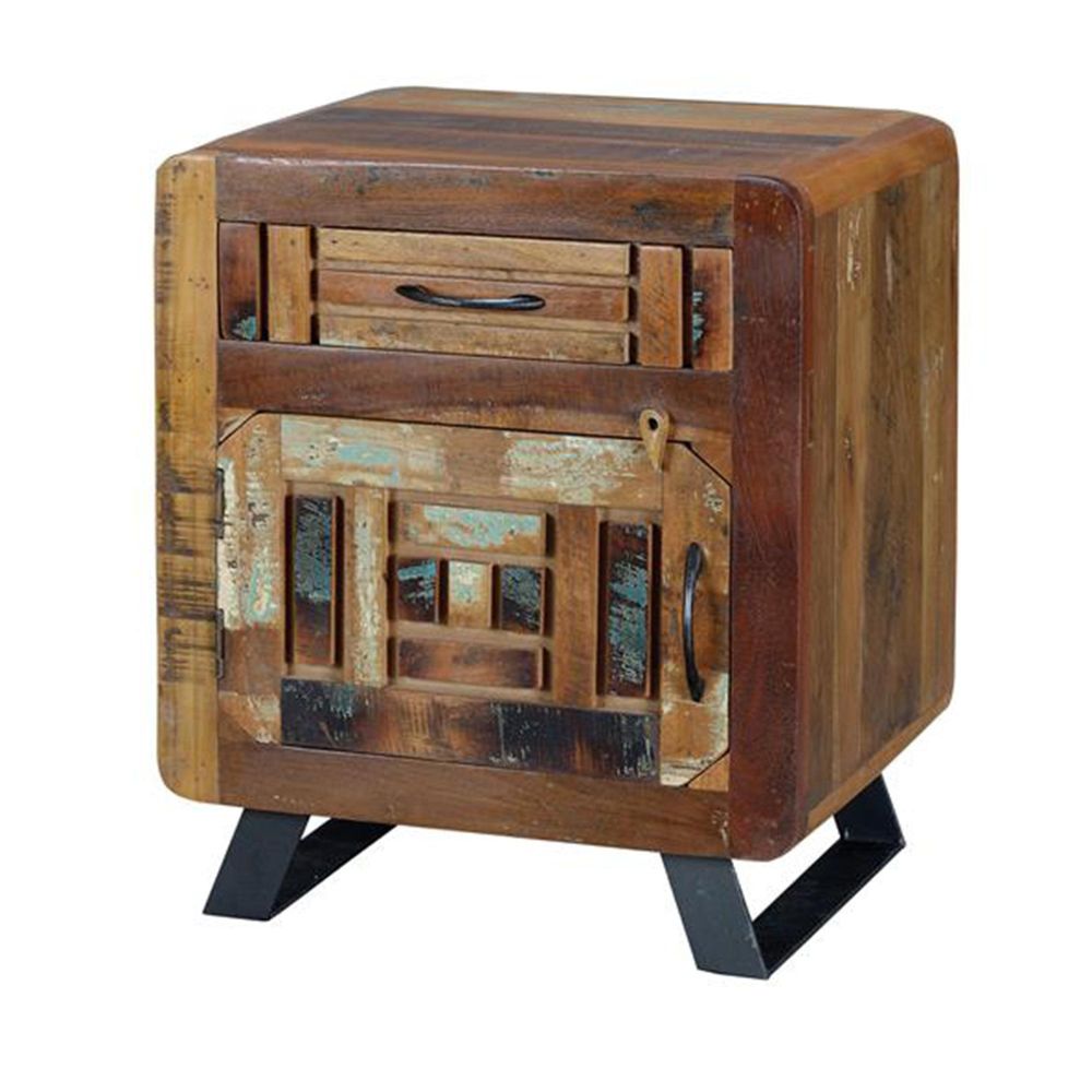 Item Code: 6971 Recycled Wood Bedside With Metal Legs.