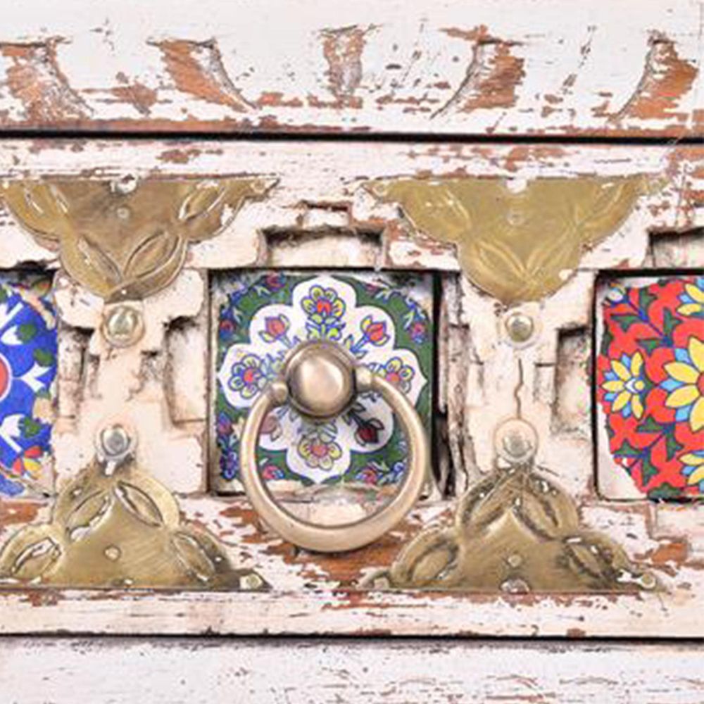 Item Code: 6578 Solid Mango Tree Wood Night Table With Maiolica And Bronze Details