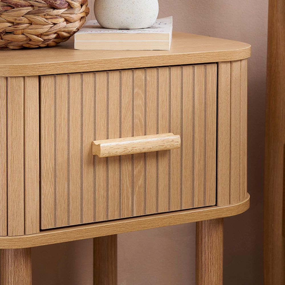 Axel Curved Bedside Table - 1 Drawer - Oak Fluted