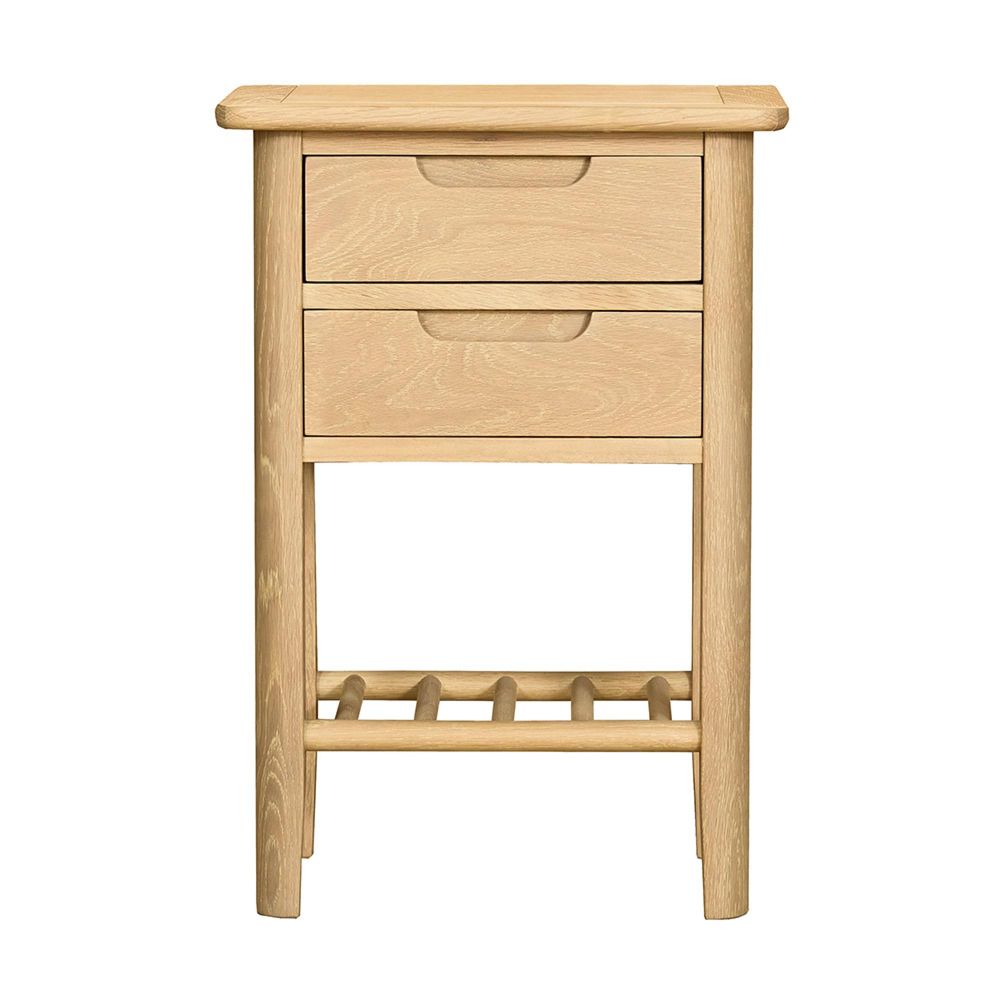 Simple, stylish, and built to last, the Twyford Oak 2 Drawer Bedside Cabinet offers practical storage with a touch of Scandinavian charm. Crafted from pale oak with naturally warm tones, it blends modern rustic design with fine craftsmanship, making it a versatile addition to any bedroom.
