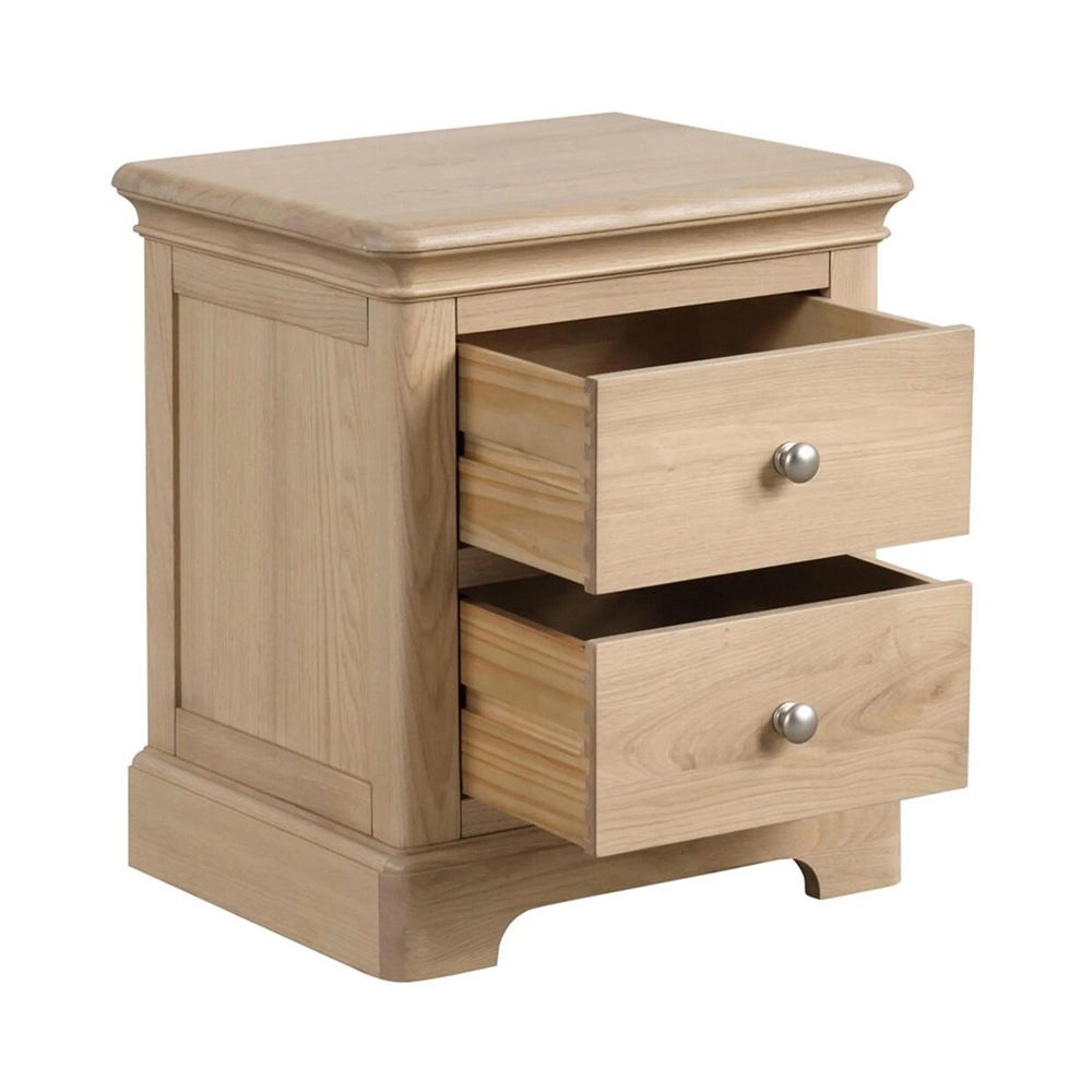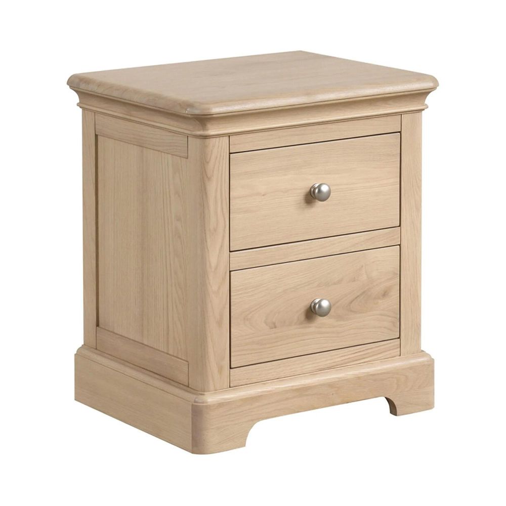 Bring timeless style and practical storage into your bedroom with the Romford Oak 2 Drawer Bedside Cabinet. Crafted with care from a blend of white oak, pine, and MDF, this piece combines natural beauty with durability, offering a design that feels both warm and sophisticated.